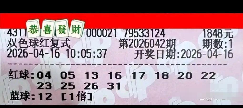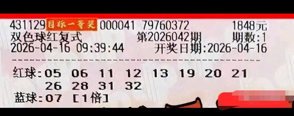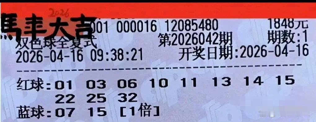 双色球26042期开奖在即,各路大额实票纷纷亮相晒票圈。本期看点格外集中:不仅有4张万元大复式罕见扎堆,更有14张面值1848的大票集体登场,阵容堪称豪华。