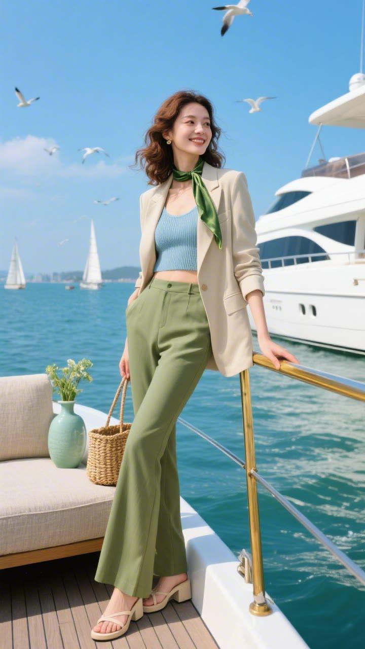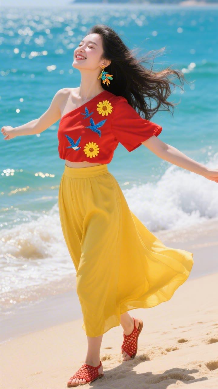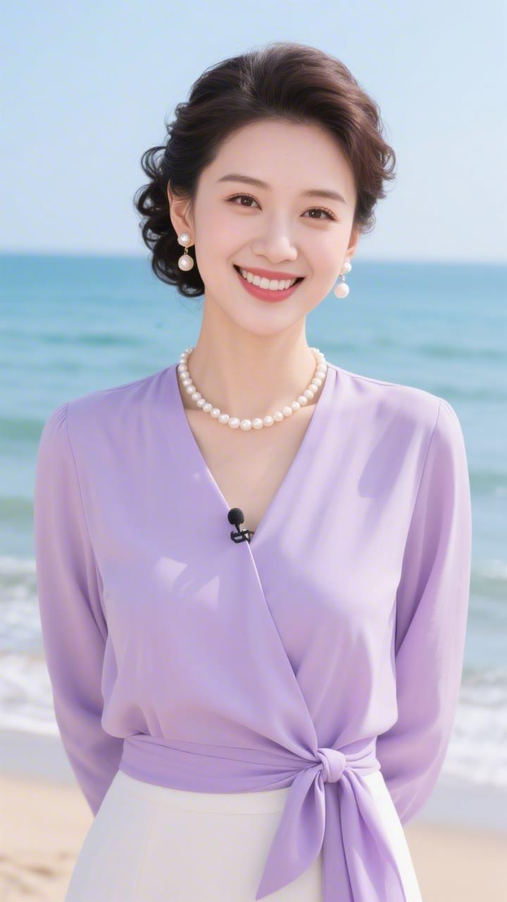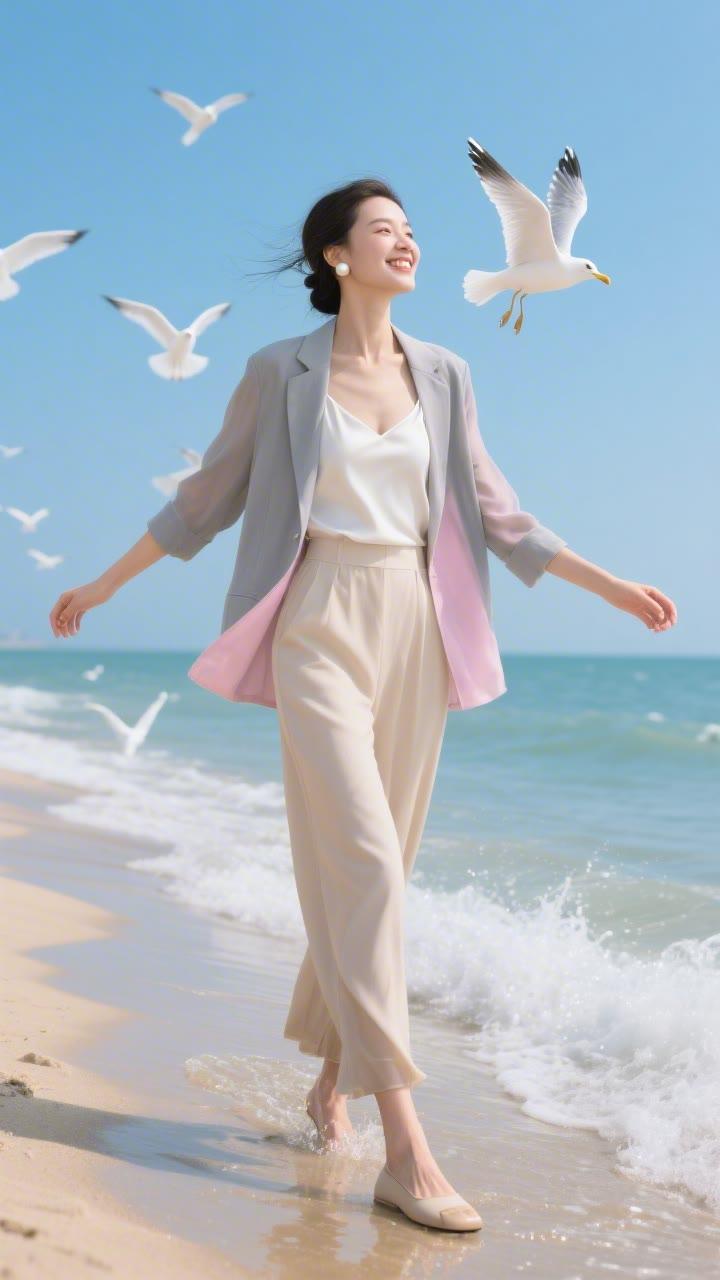 海边少女,粉嫩梦幻,花环点缀,笑靥如花