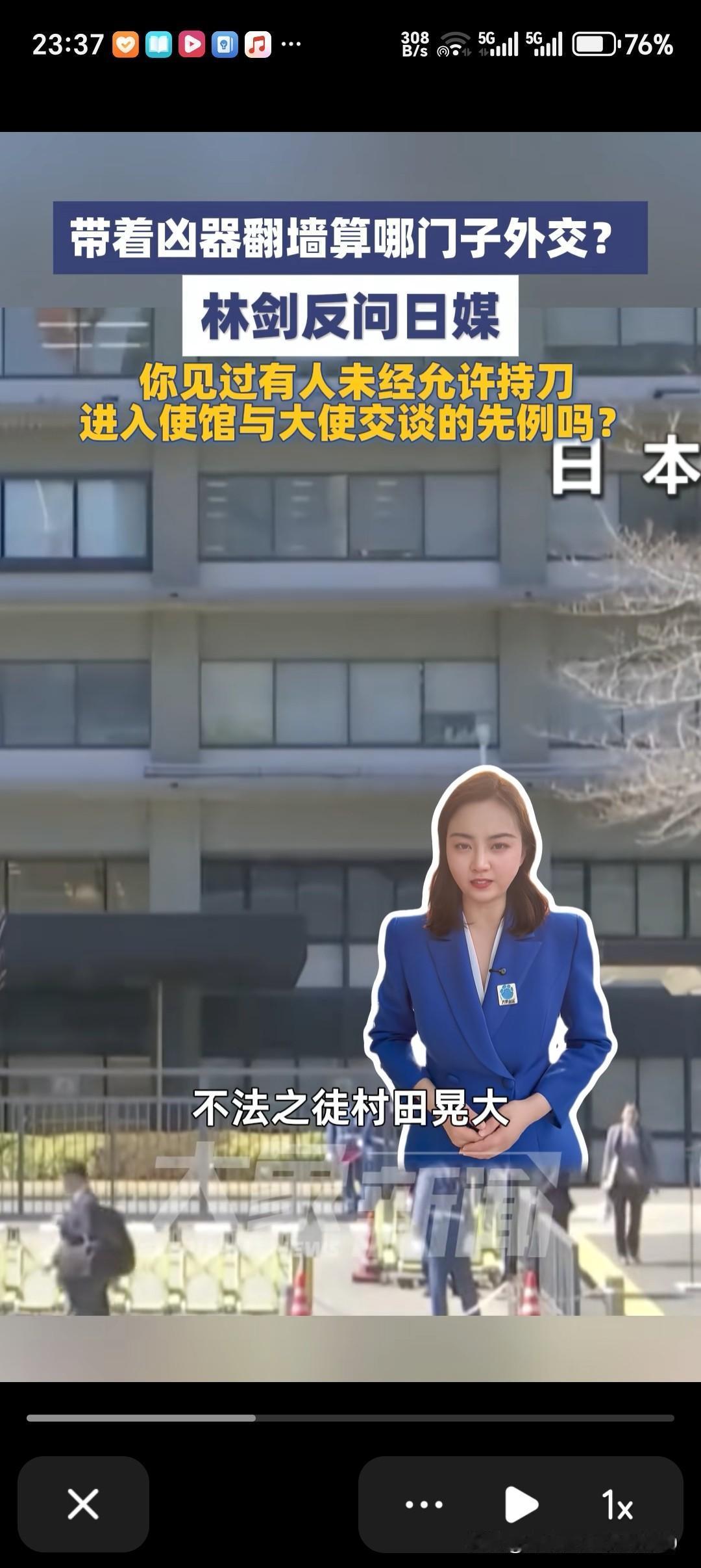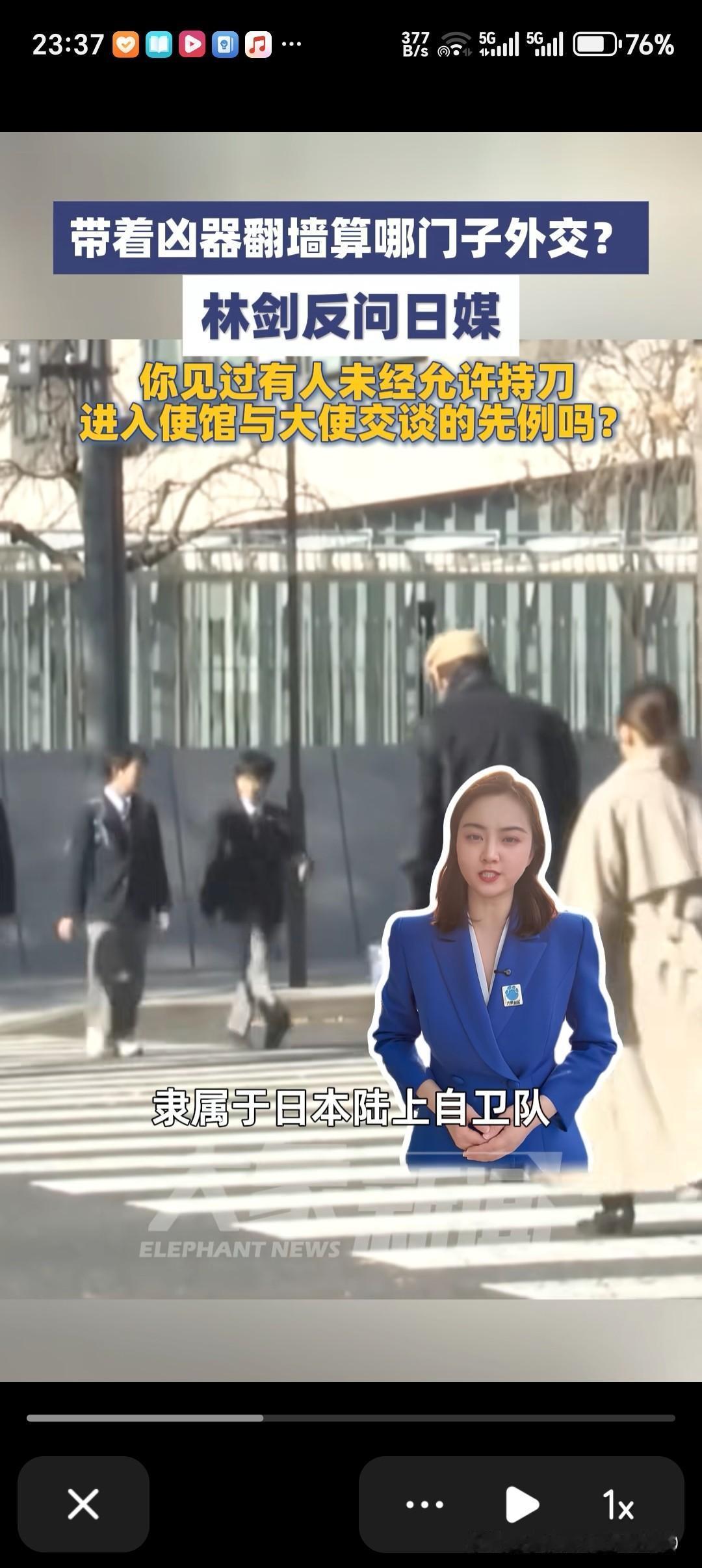 这是2026年3月24日发生在东京的日本现役自卫队员持刀翻墙闯入中国驻日本大使馆事件,性质极其恶劣。