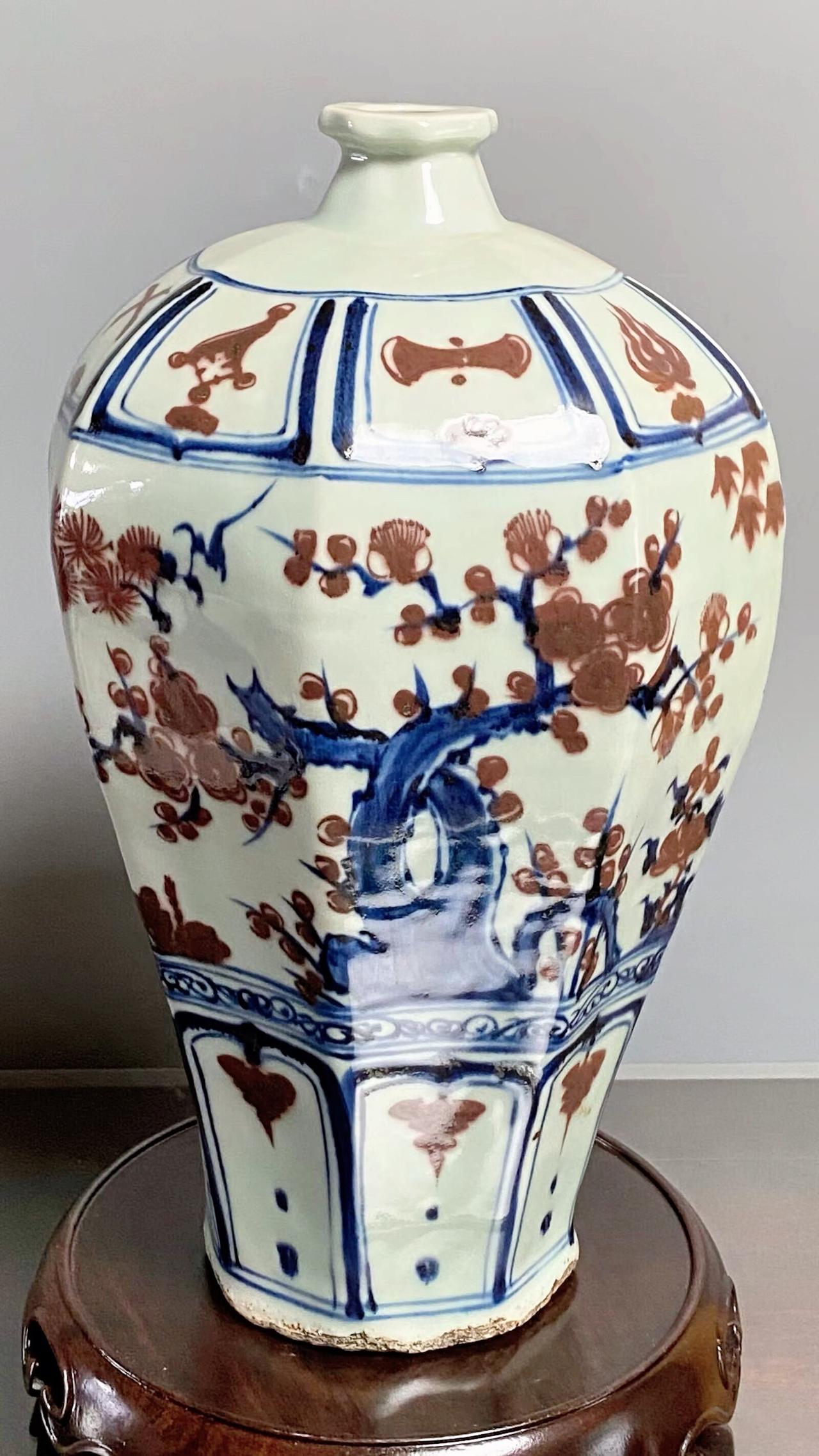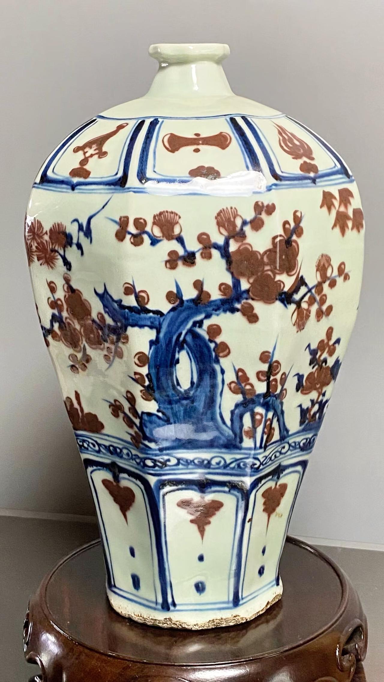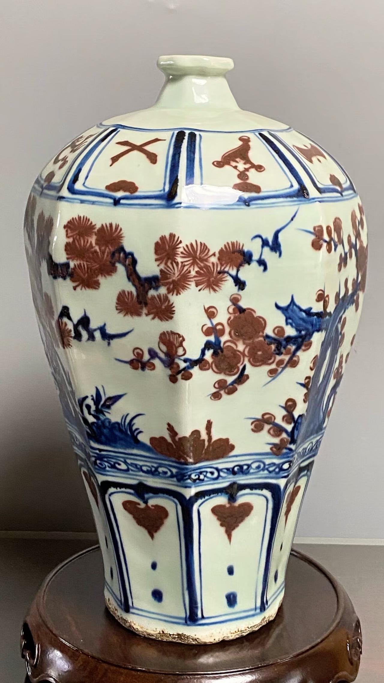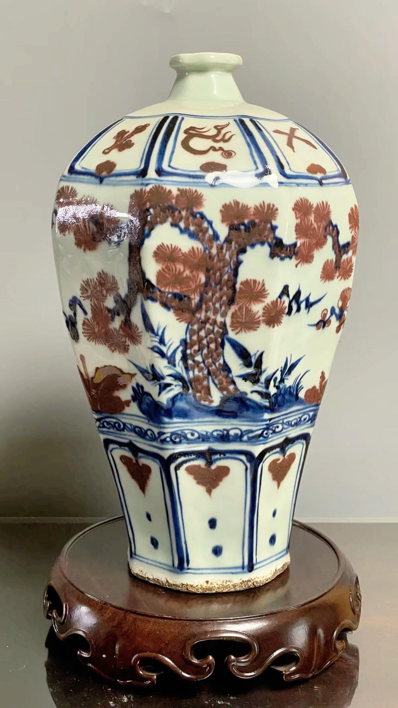 元代青花釉里红岁寒三友梅瓶,这玩意可以吧!元青花 元代青花釉里红 瓷器 古董