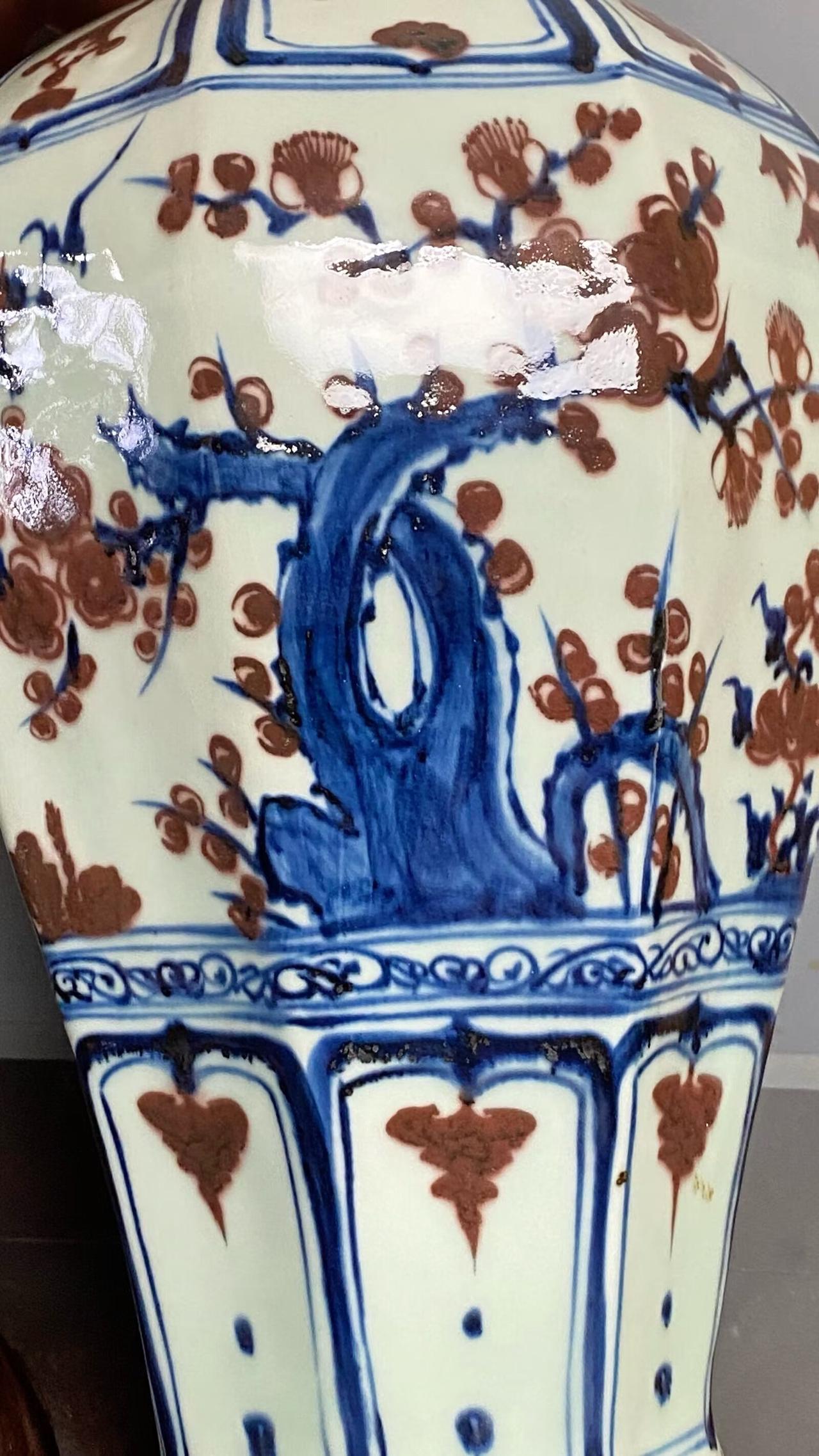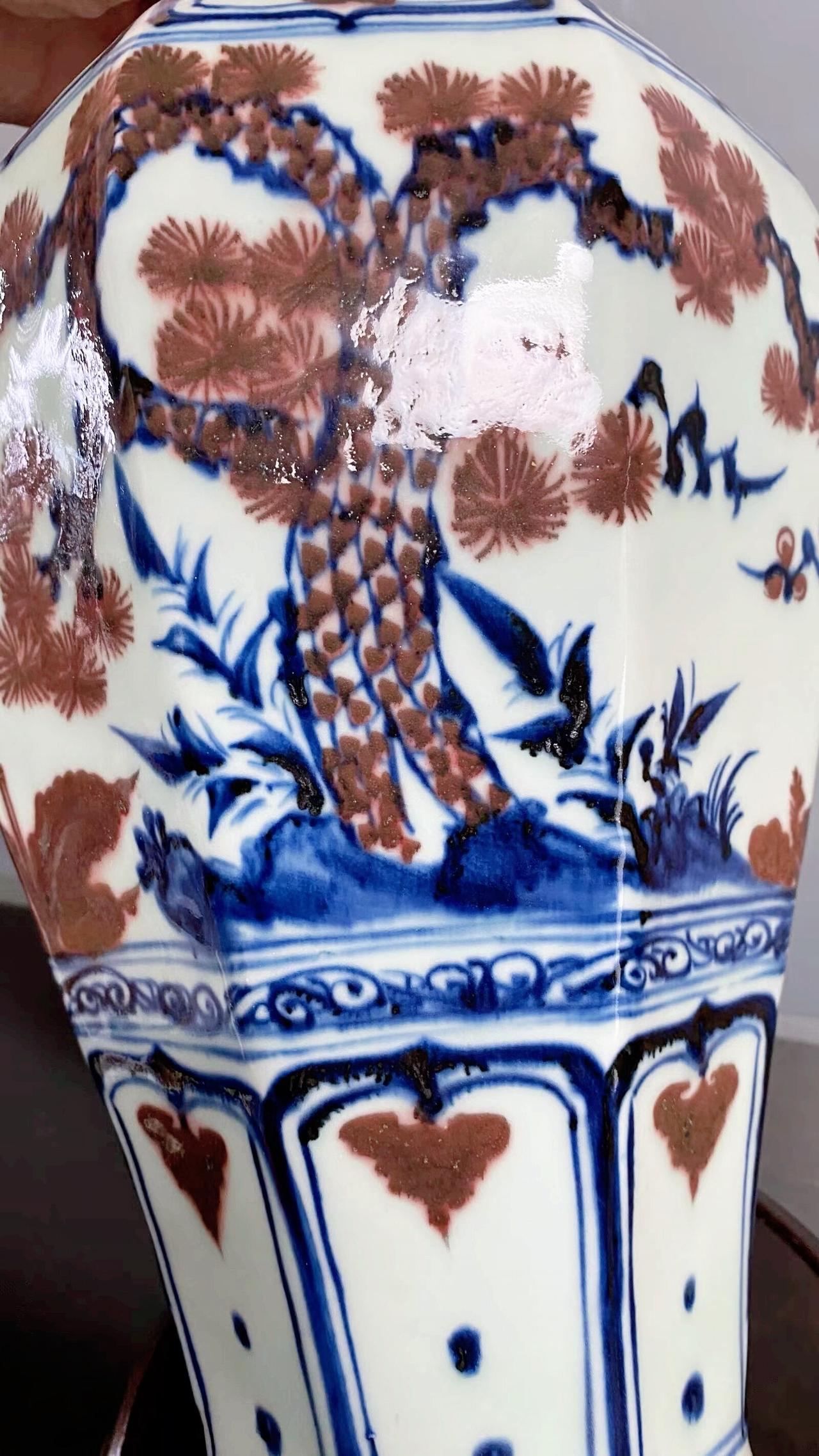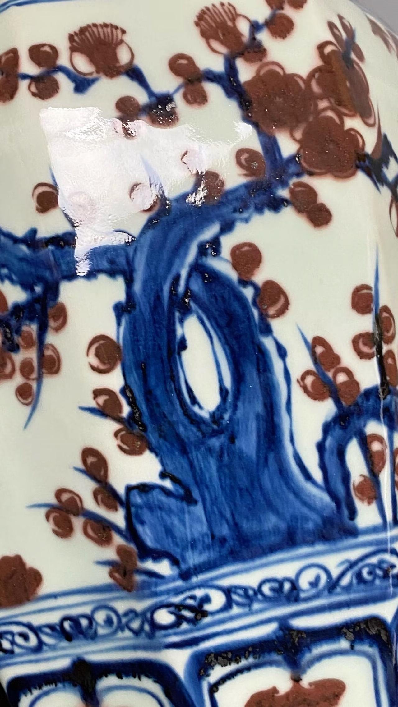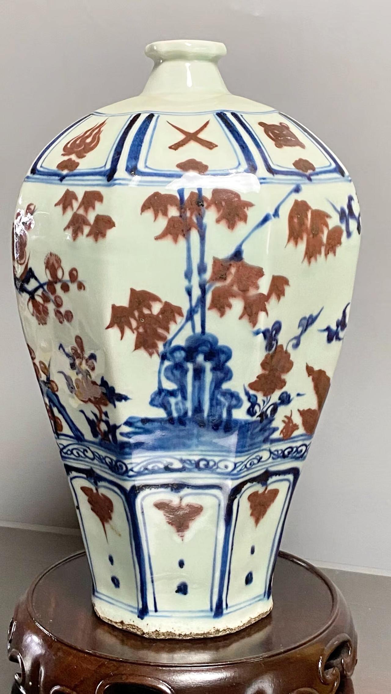 元代青花釉里红岁寒三友梅瓶,这玩意可以吧!元青花 元代青花釉里红 瓷器 古董
