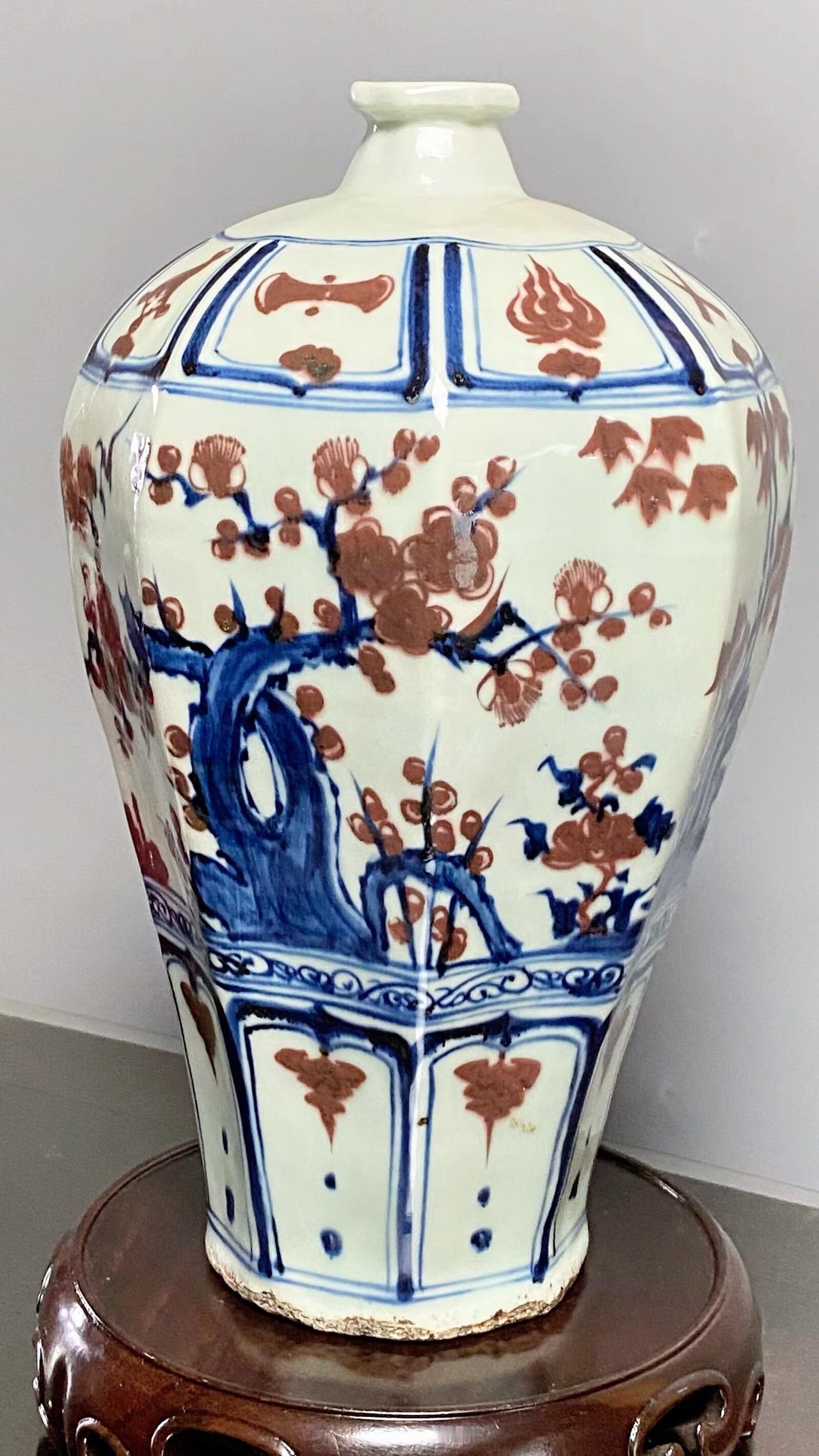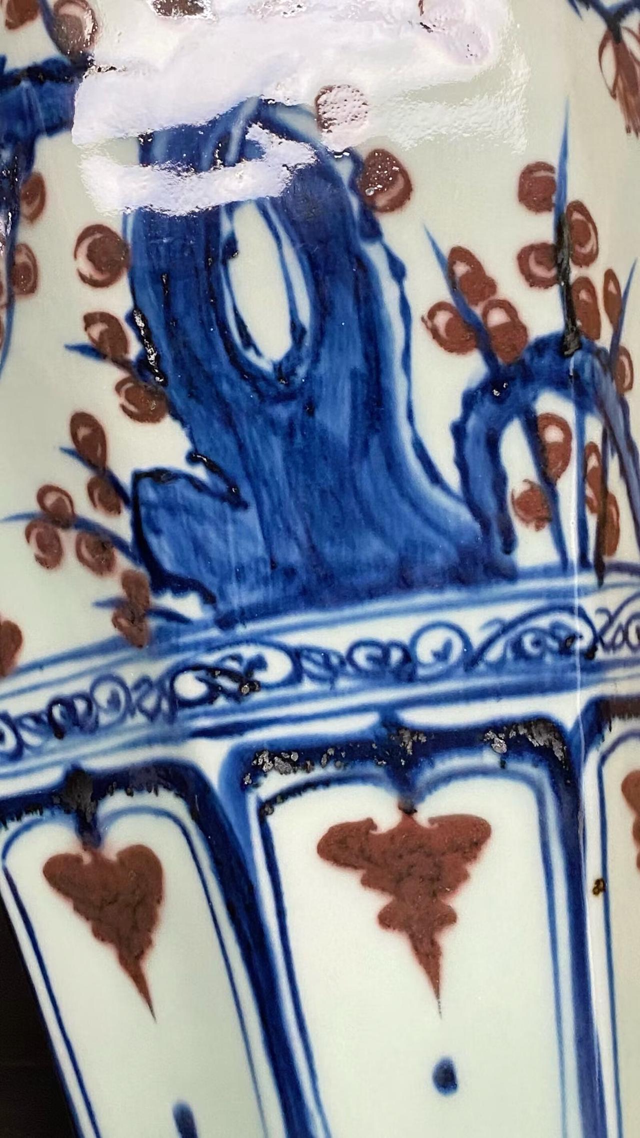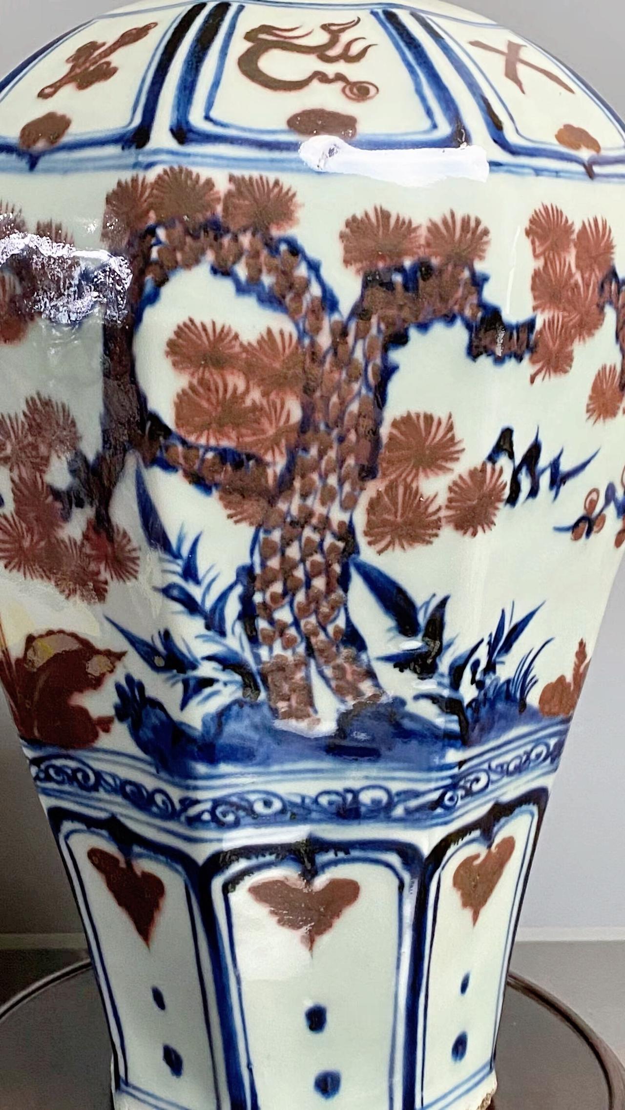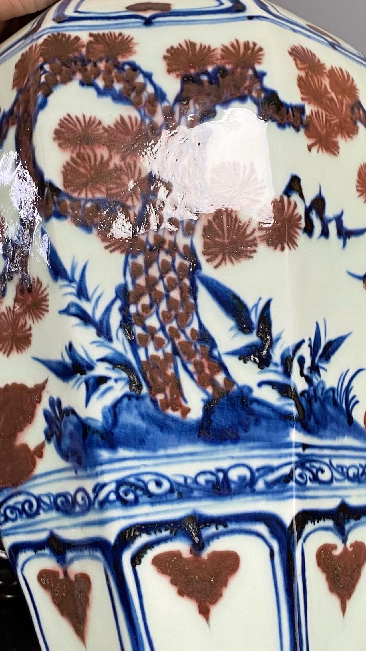 元代青花釉里红岁寒三友梅瓶,这玩意可以吧!元青花 元代青花釉里红 瓷器 古董