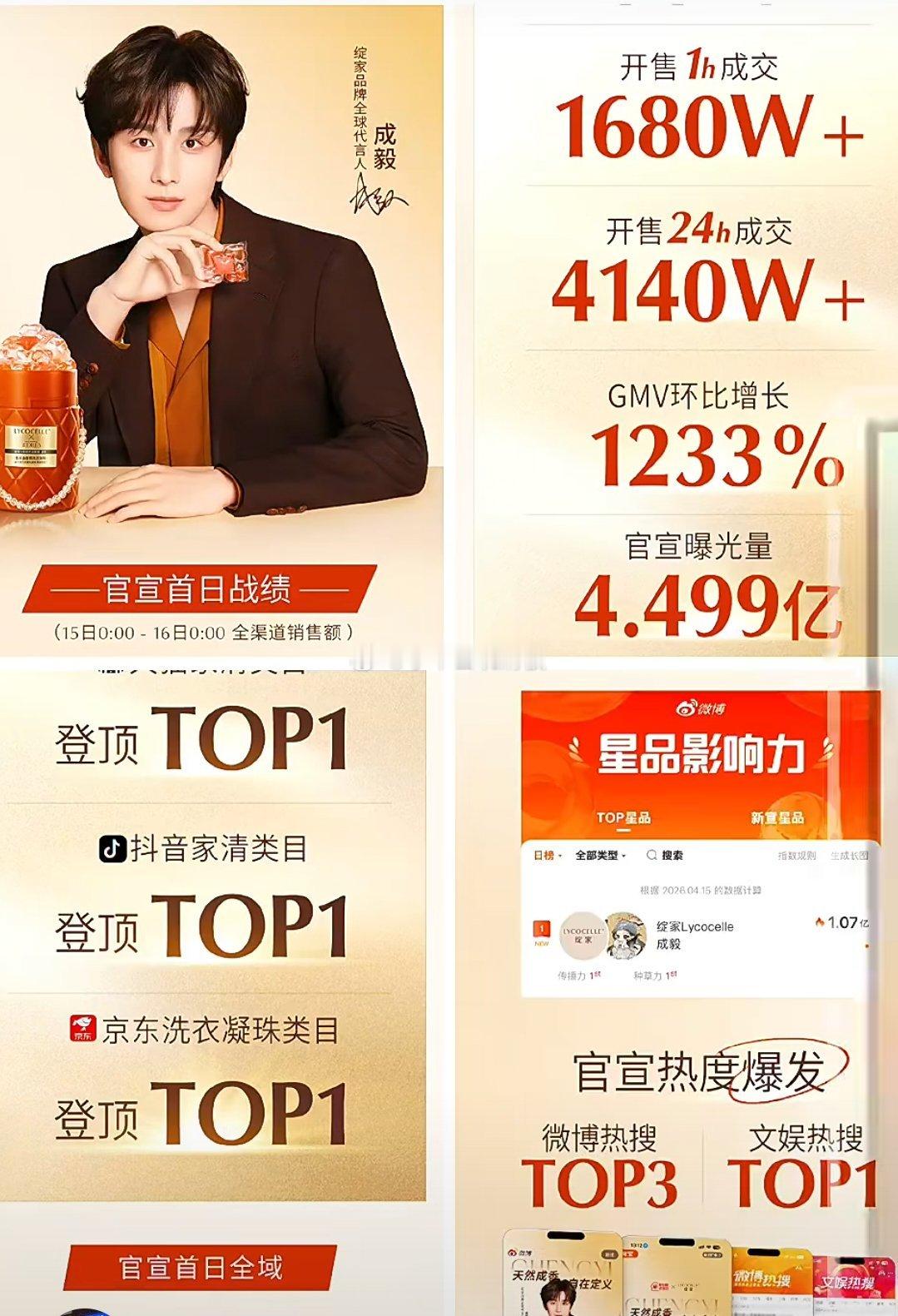 成毅✖️绽家首日官方销售战报来了,官宣1小时,成交1680w➕,官宣24小时,成交销售额4140w➕