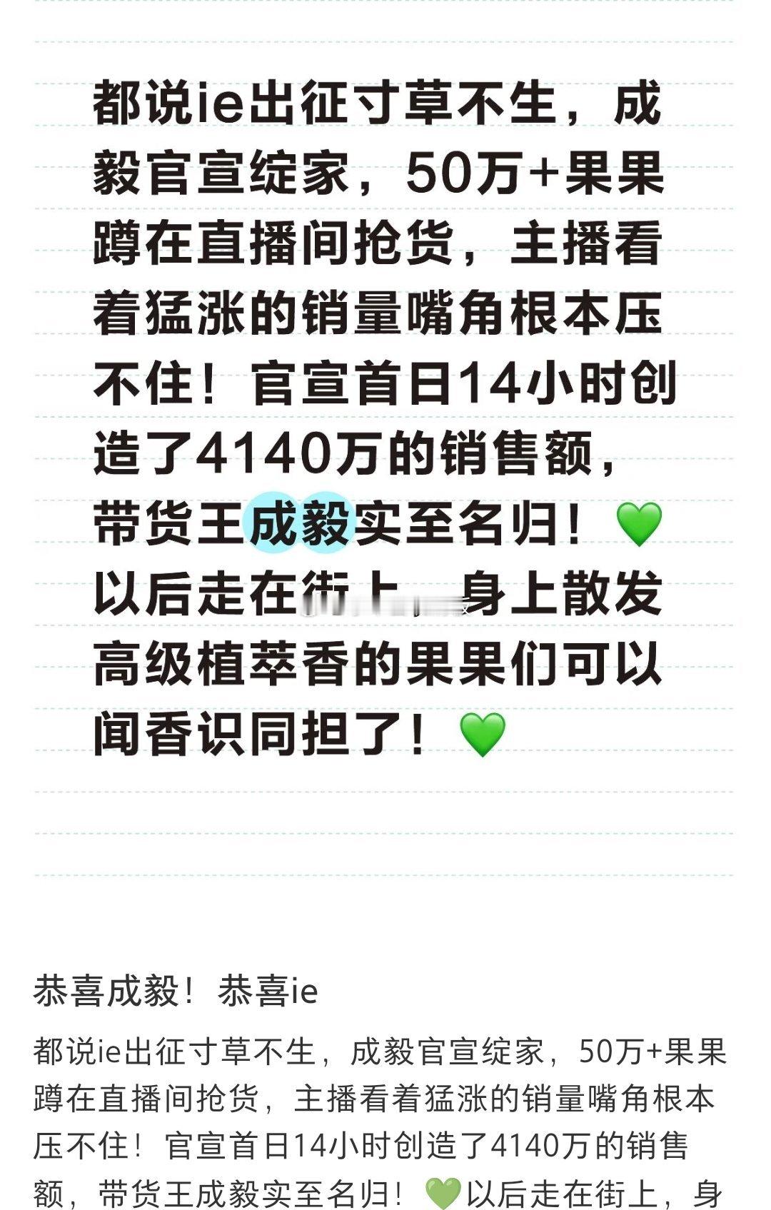 绽家官耗发的图,太有梗了!想看成毅官宣的战报到底多顶,才让品牌霸霸如此满意!成亿