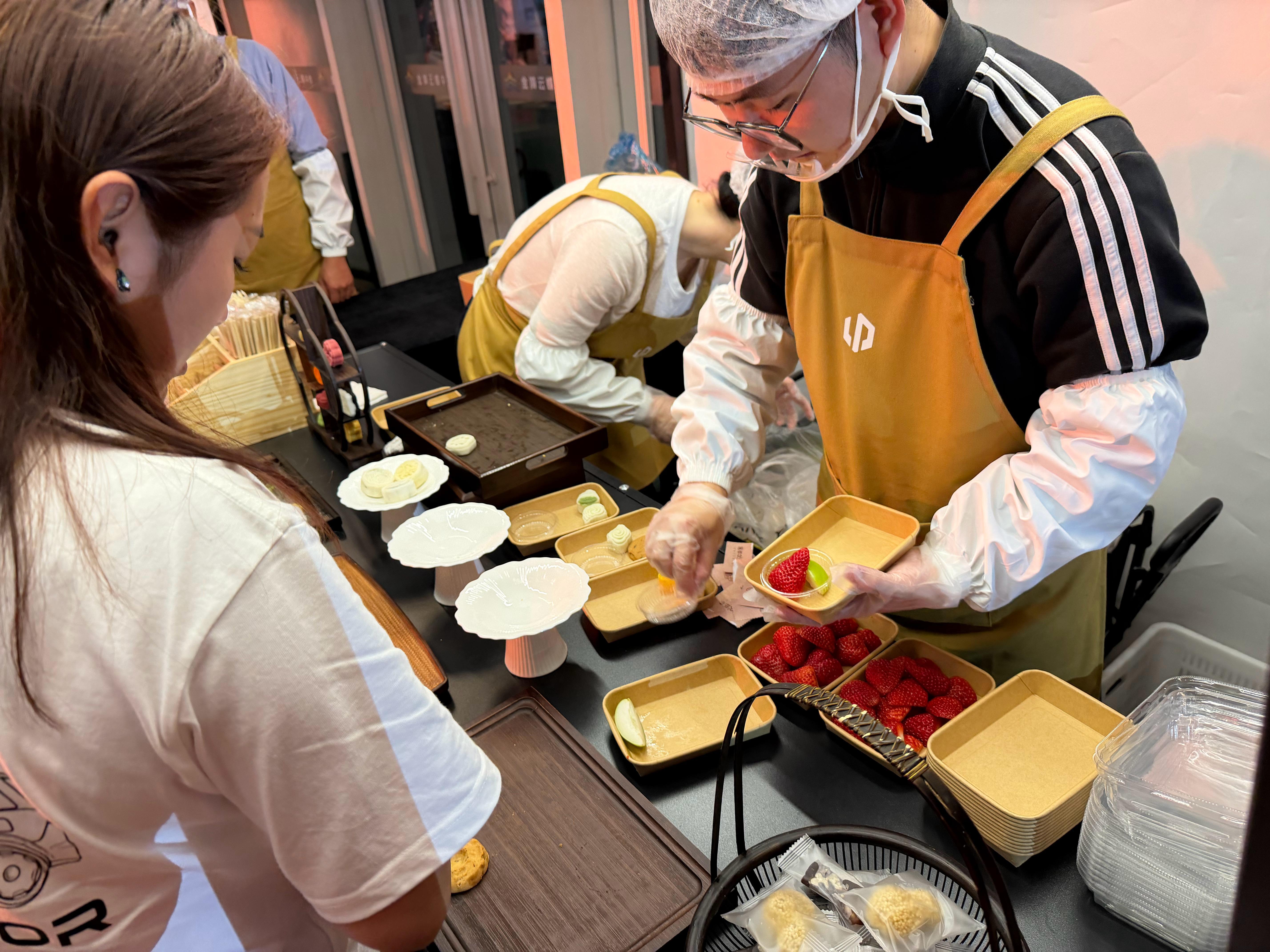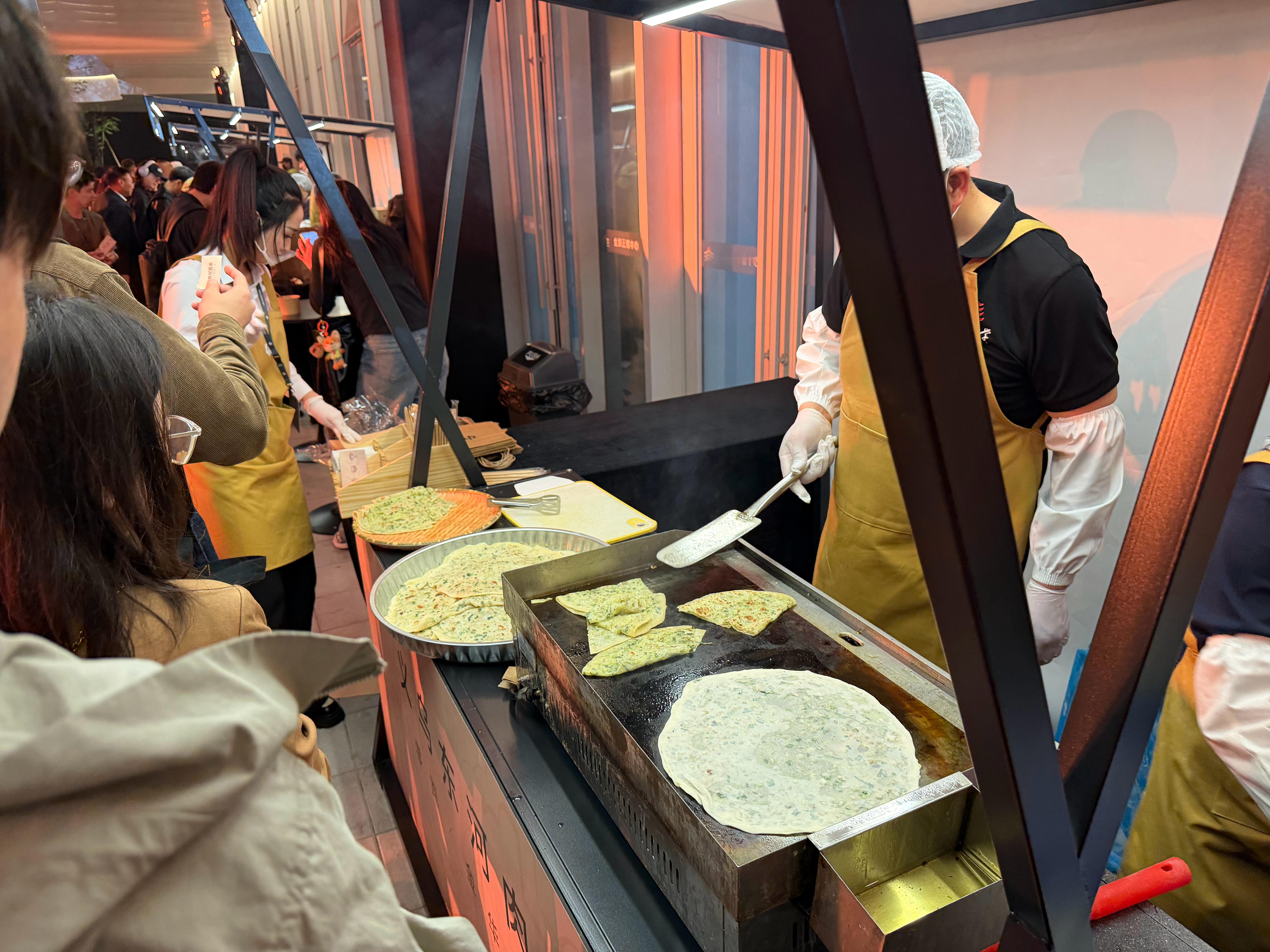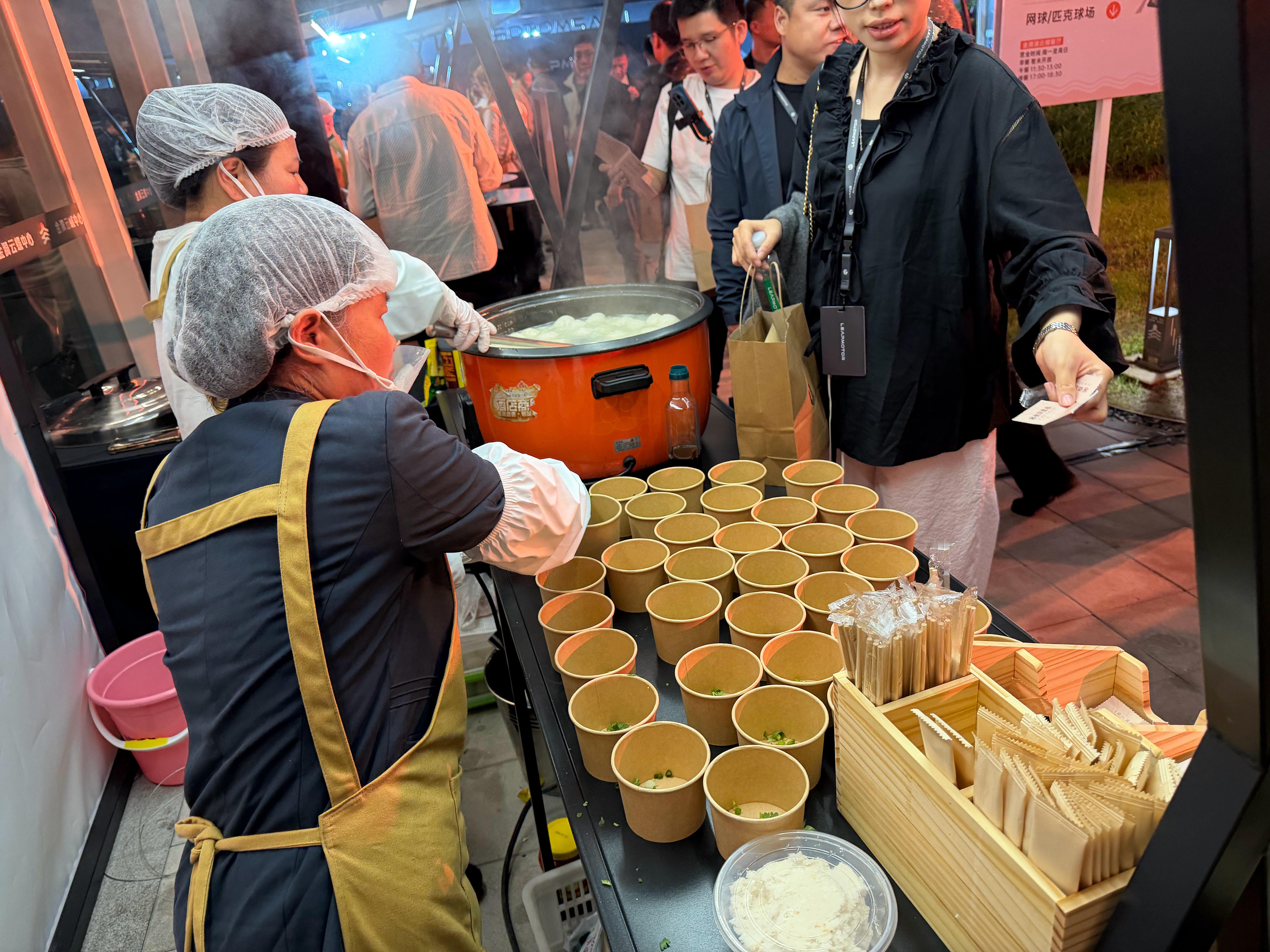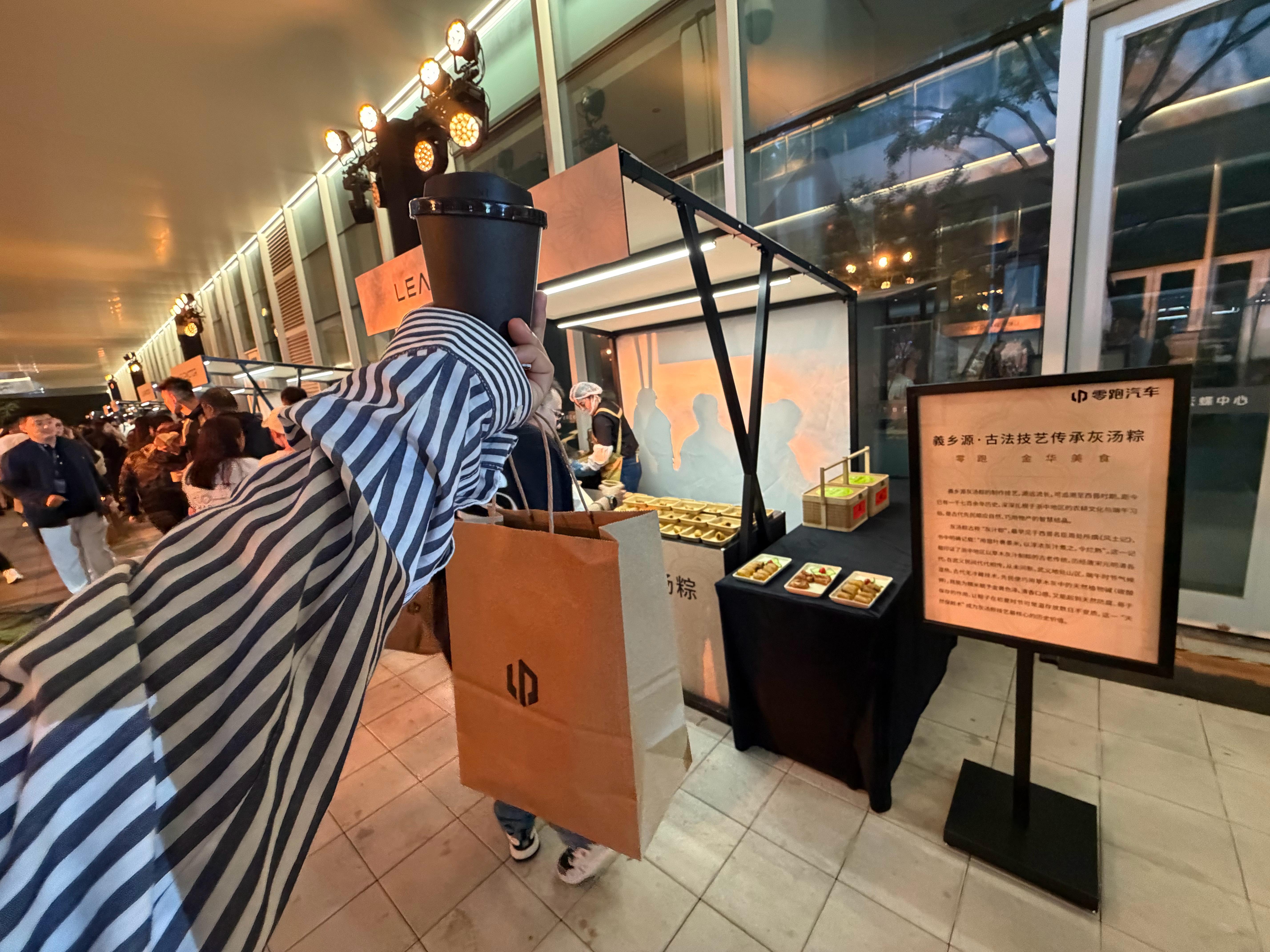 零跑这个活动真行,发布会结束后,他们把金华有名的小吃找来,摆了两行摊儿