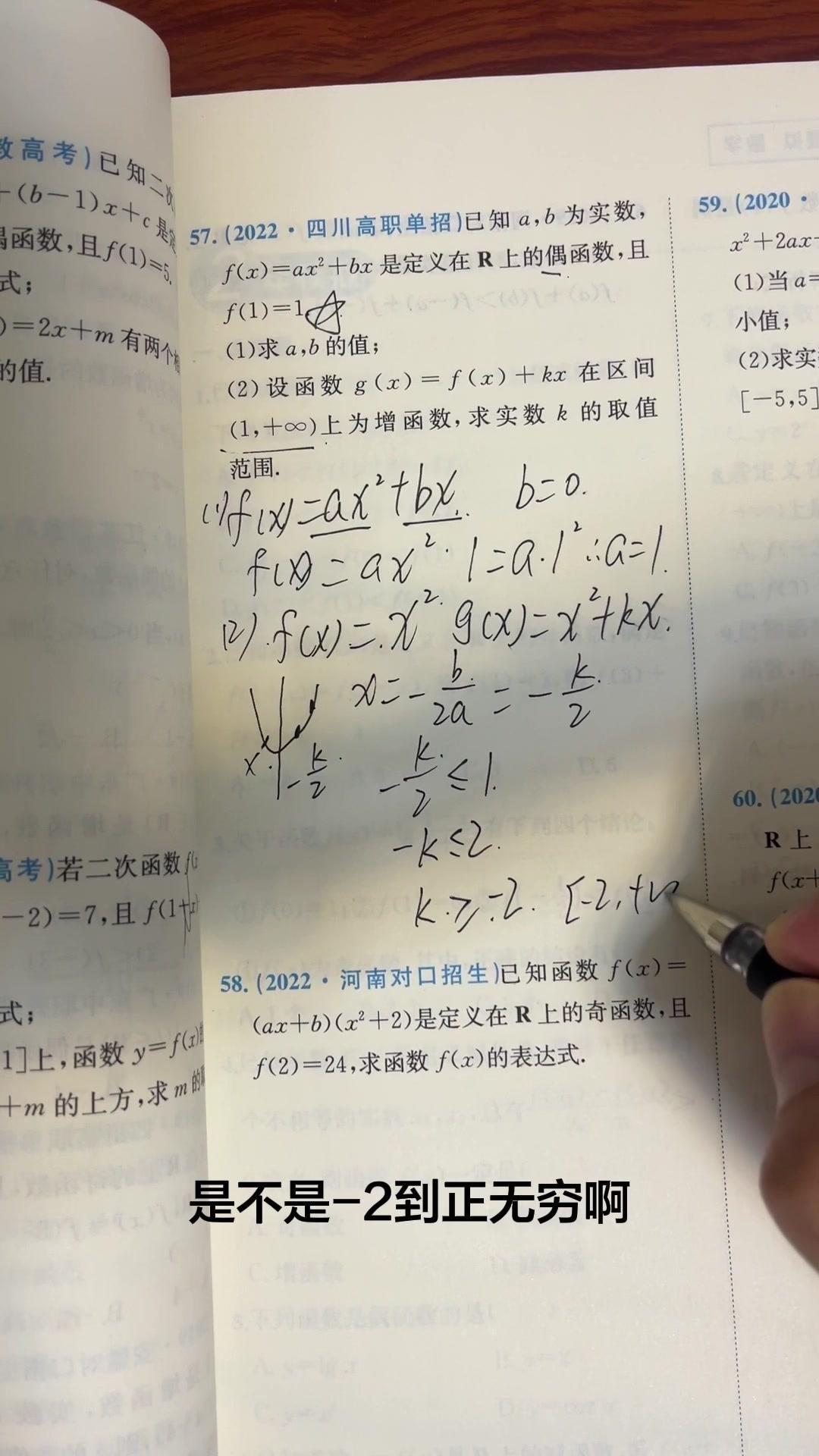 2️⃣求Gk范围:Gx=x²+kx是开口向上的二次函数,对称轴为x=-k/2。要在[1,+∞)增,对称轴需在1左侧≤1,即-k/2≤1,解得k≥-2。