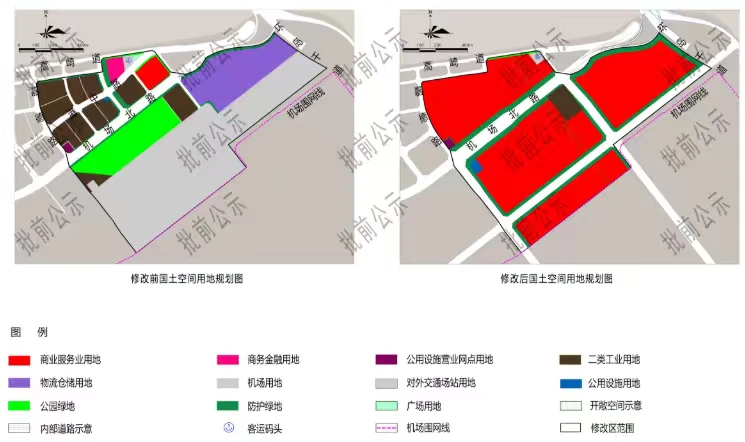 原工业、物流、机场用地 → 调整为商业服务业用地