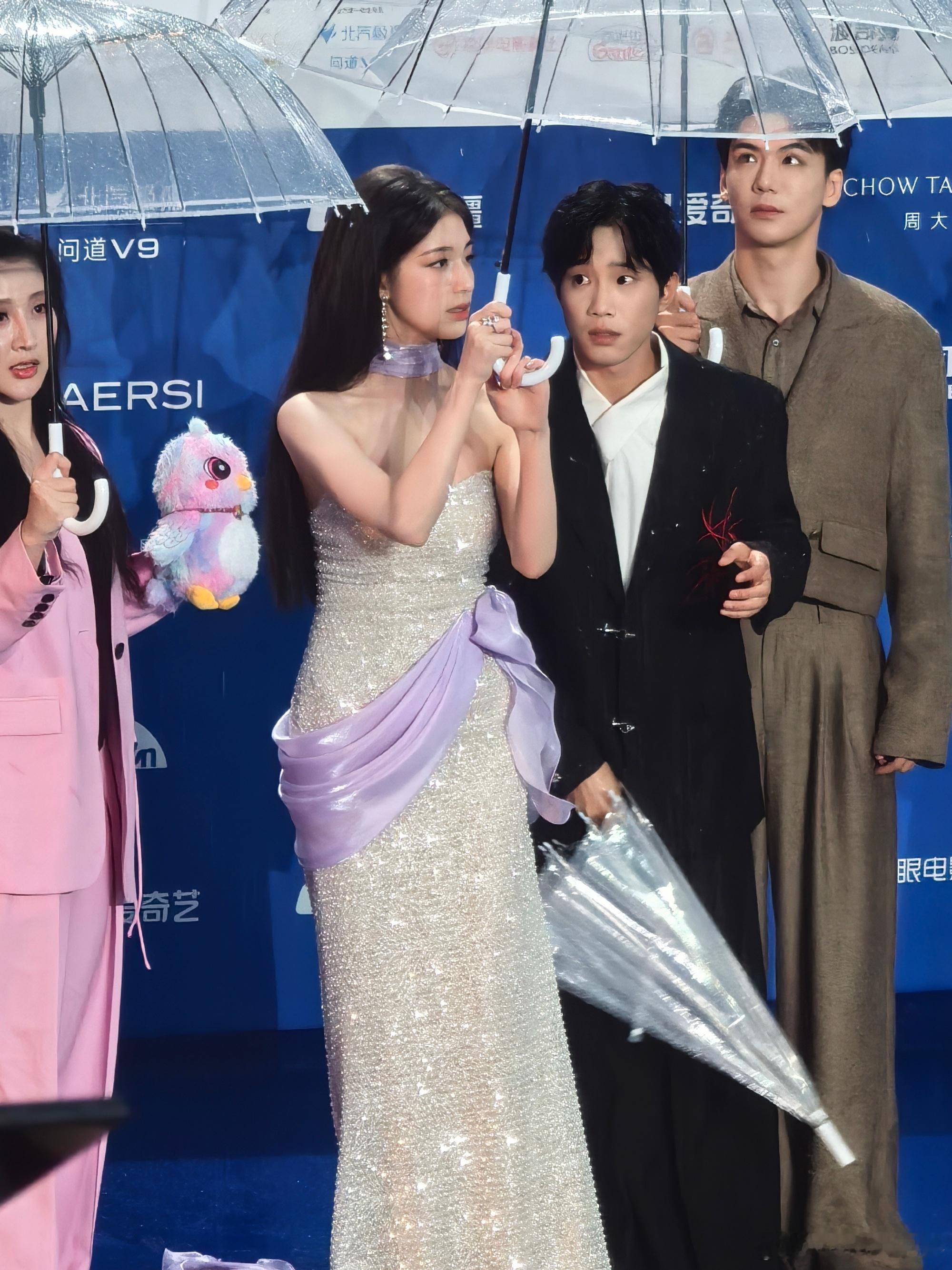 钟丽丽红毯被淋了 钟丽丽就算下雨伞挤不下也不慌,雨中浅笑好有教养,就这样从容不迫北京国际电影节