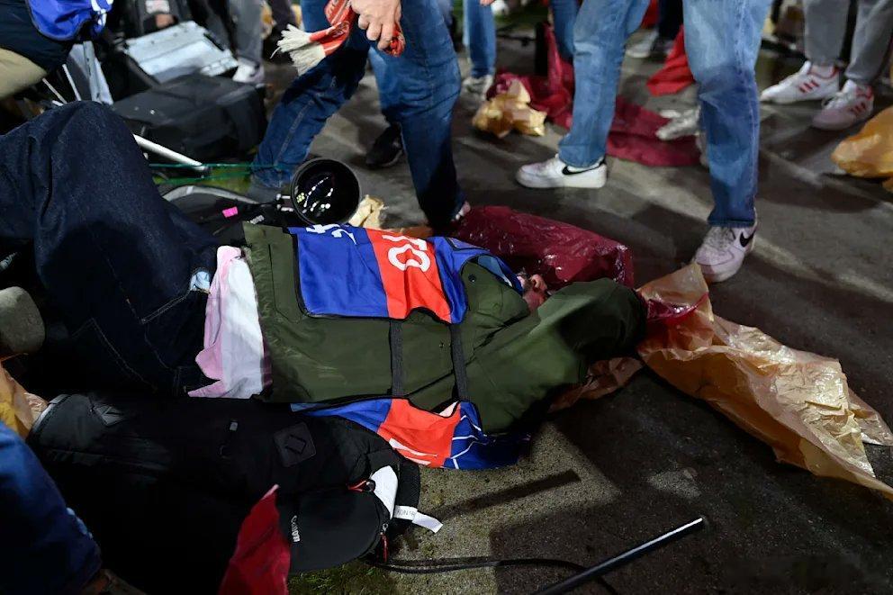 🚨拜仁進球得分後,幾名拜仁極端球迷從南看台跳入看台與球場之間的限制區域,與球員一起慶祝。兩名攝影師不知不覺中捲入混亂之中——其中一人甚至失去意識。