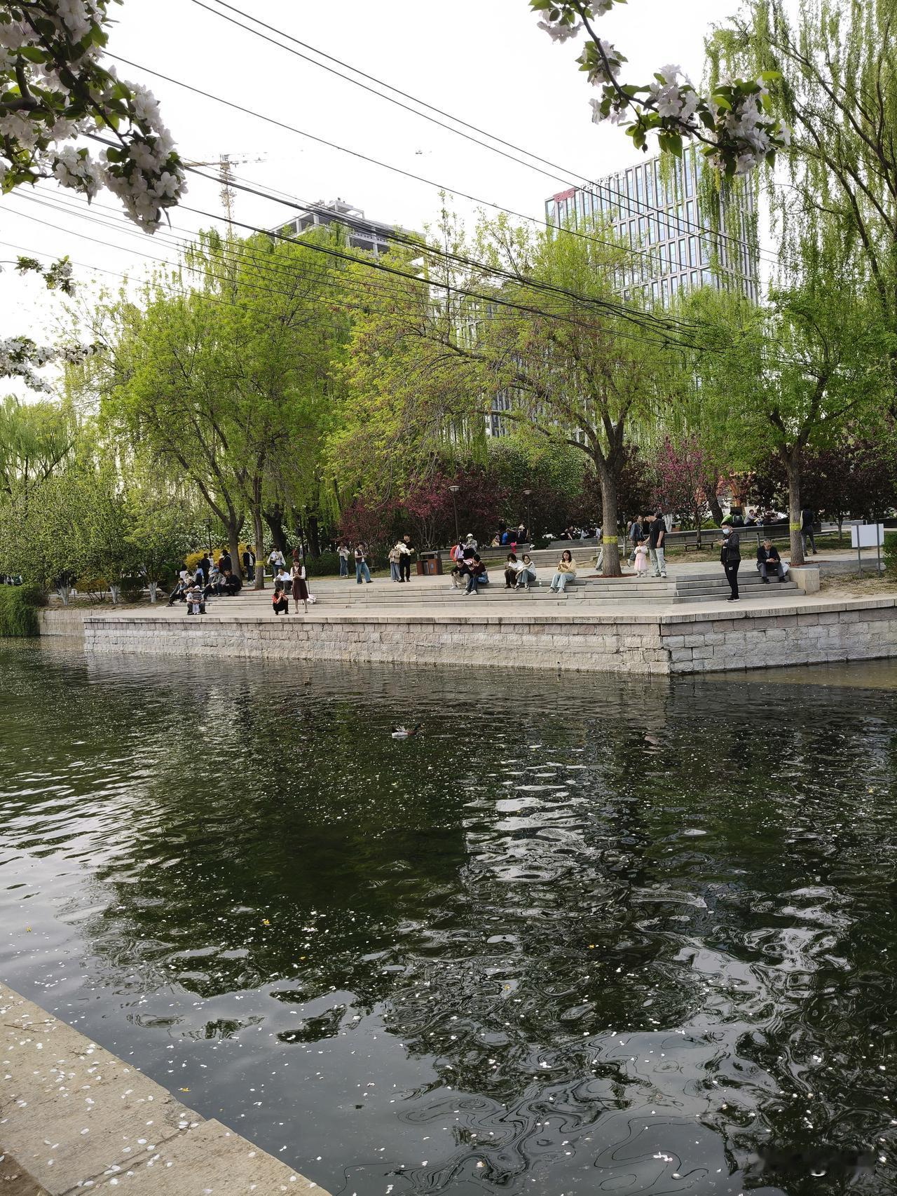 起风之际,水面上飘浮着一层厚厚的海棠花瓣。