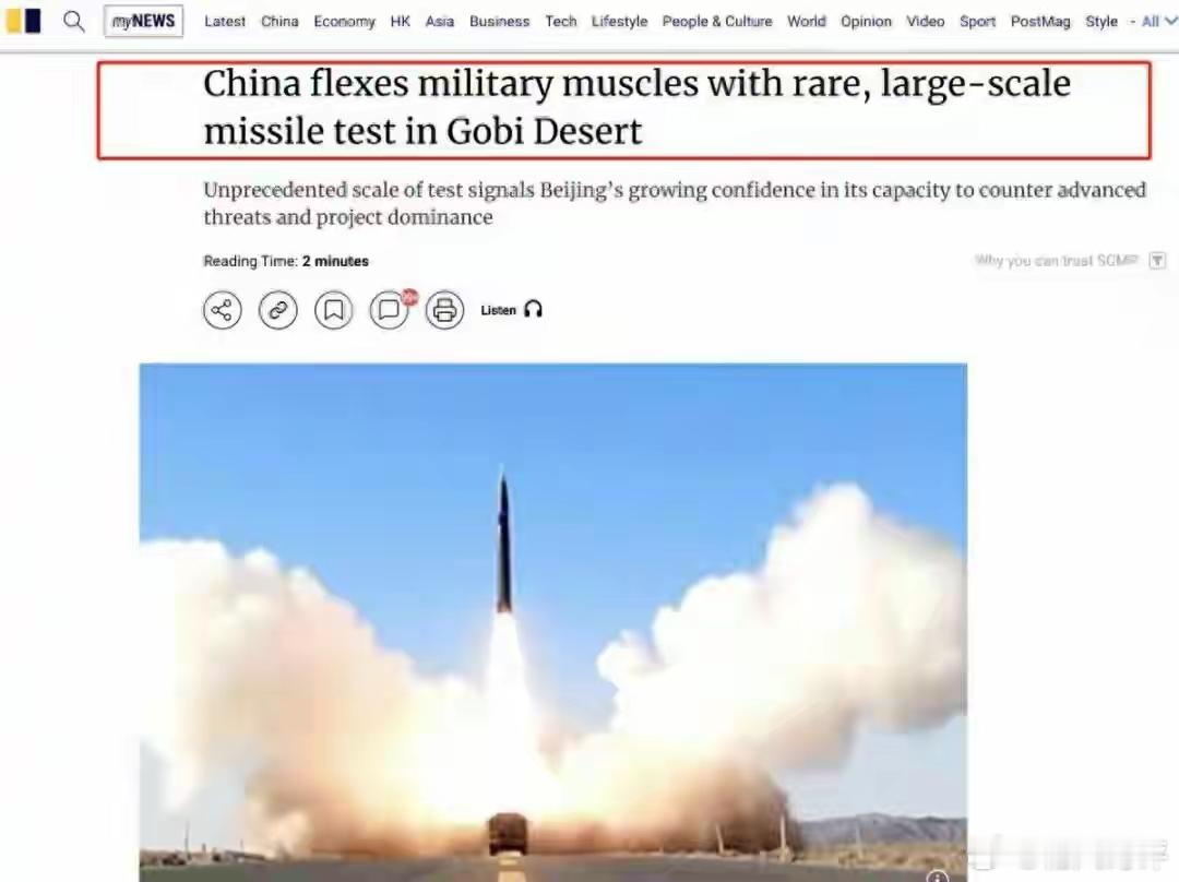 近日,据《南华早报》报道,中国解放军完成了一次极高强度的新型反导系统实战化测试。