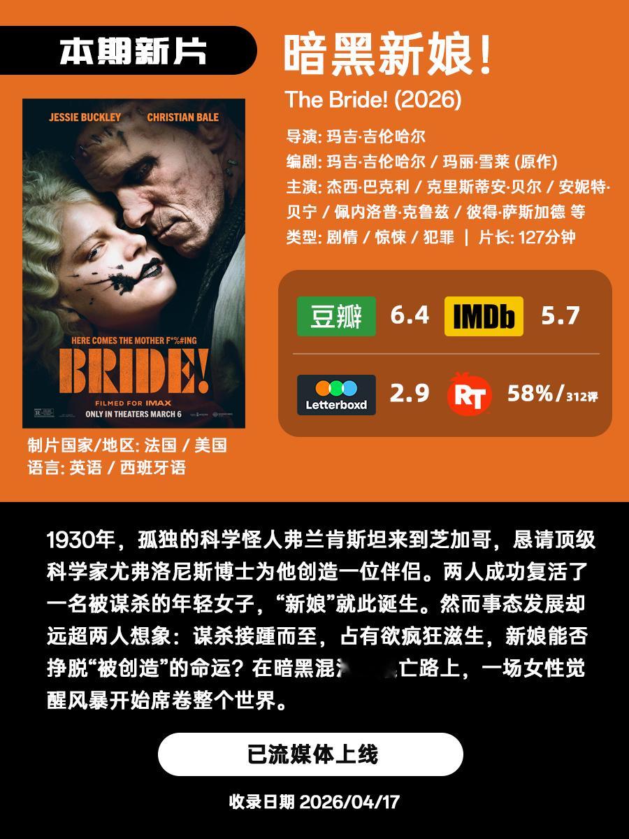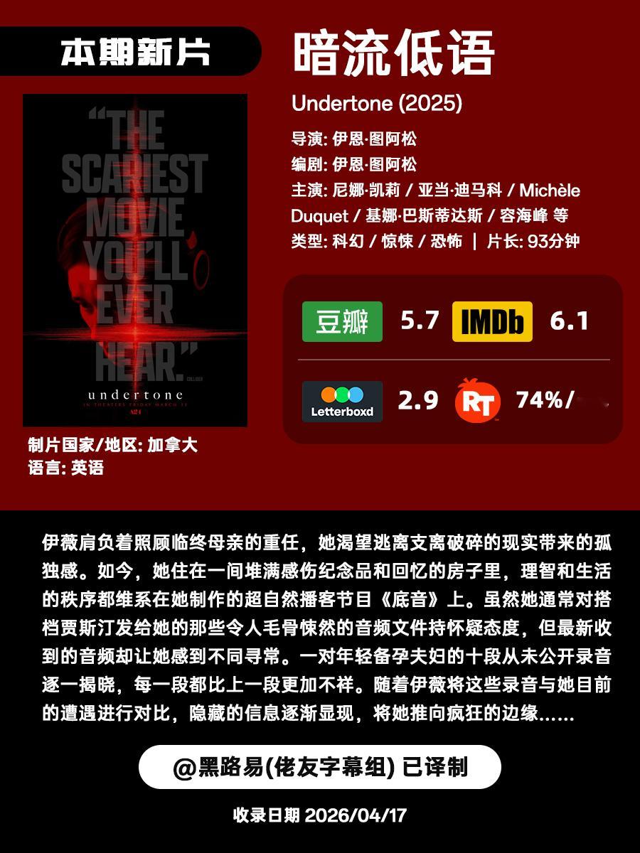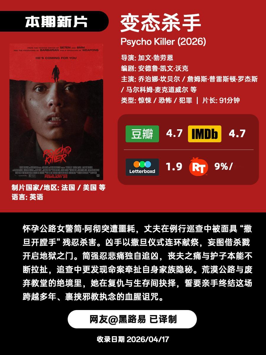 周五咯!这里是隔周的近期流媒上线恐怖/惊悚新片剧集提醒。