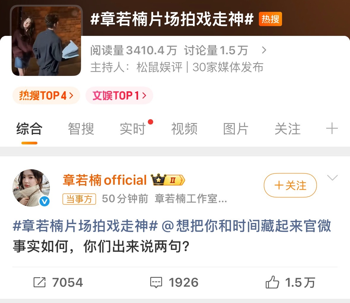 章若楠工作室喊话剧方章若楠片场拍戏走神章若楠王安宇新剧拍摄,女方被指拍戏走神,随后,章若楠工作室公开喊话:事实如何,你们出来说句话