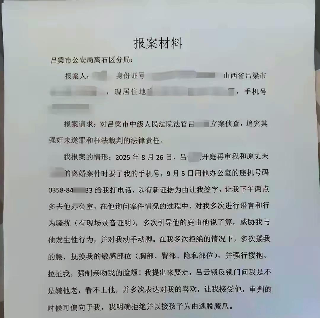 司法底线可不能被践踏!吕梁中院有法官被曝光在办公室猥亵当事人,16分钟的录音铁证都曝光了,警方已经立案。