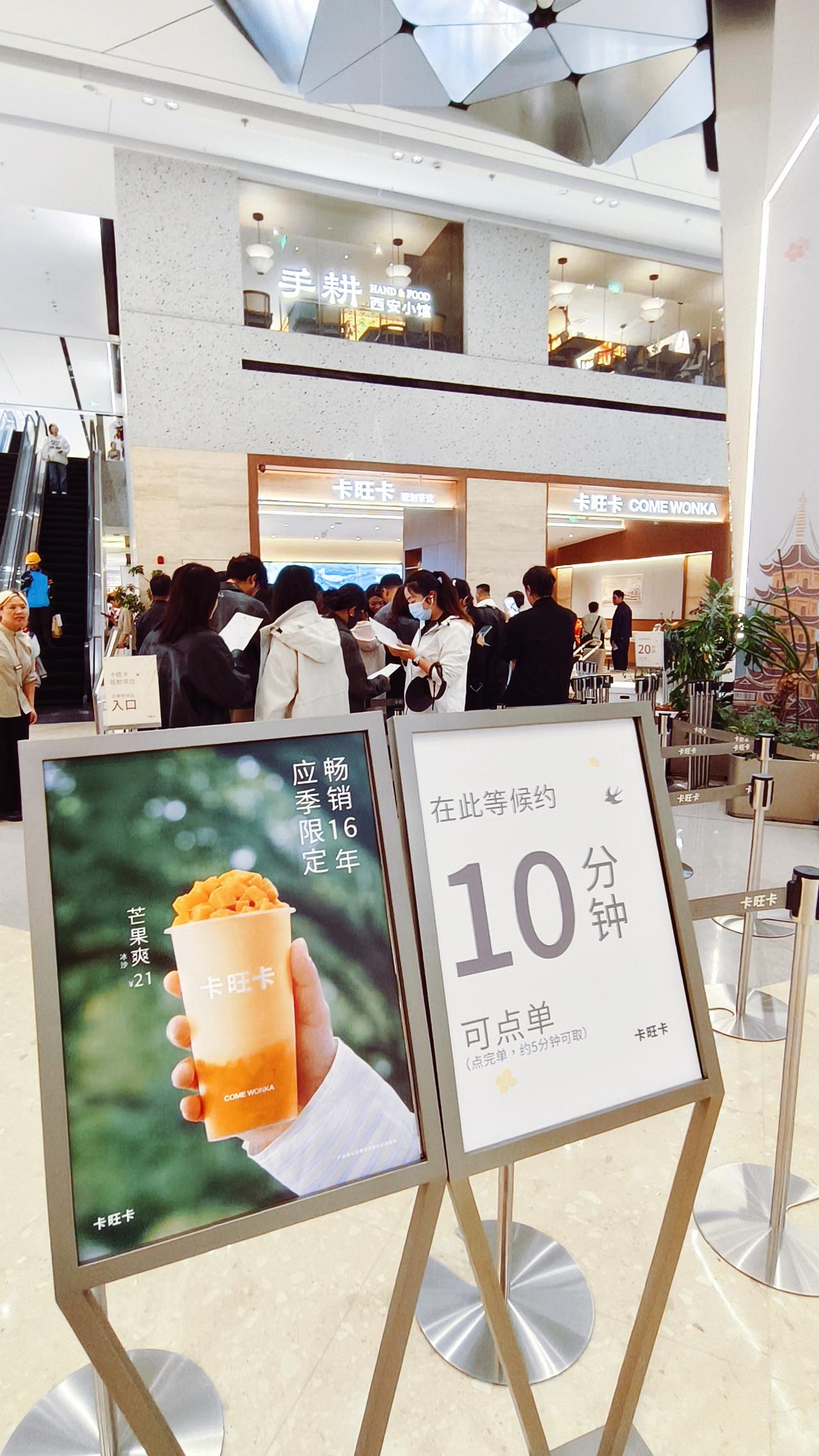 笔者上周在雨花万象天地的卡旺卡南京首店看到,尽管是普通工作日的中午,该店依旧是排队取号的状态。(如图:5~12所示)附近另一家品牌奶茶店的小姐姐,一脸羡慕地对笔者说,自打今年2月卡旺卡落地万象天地,几乎每天都在上演这样的场景。