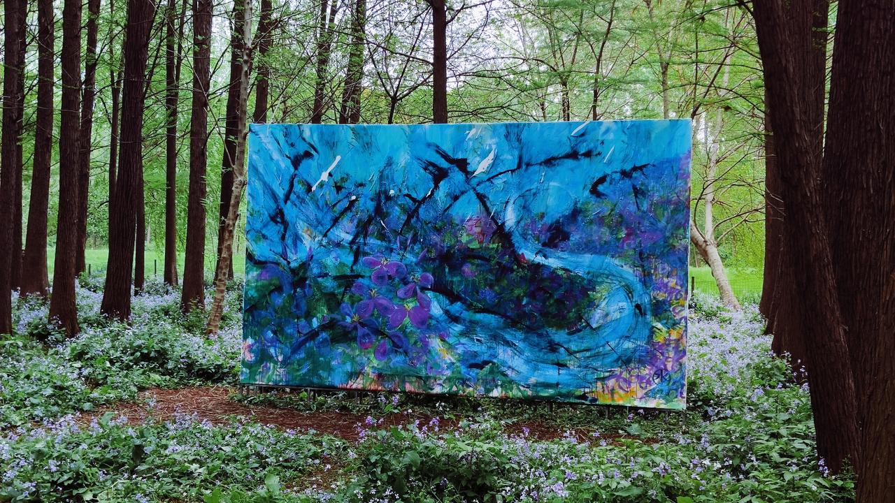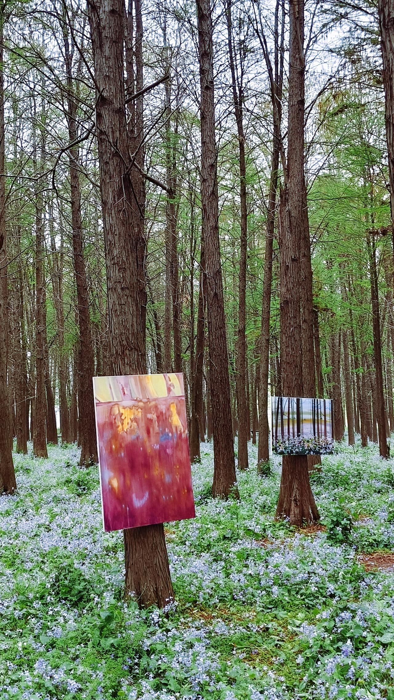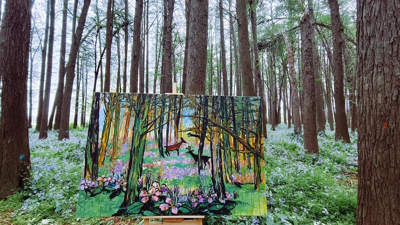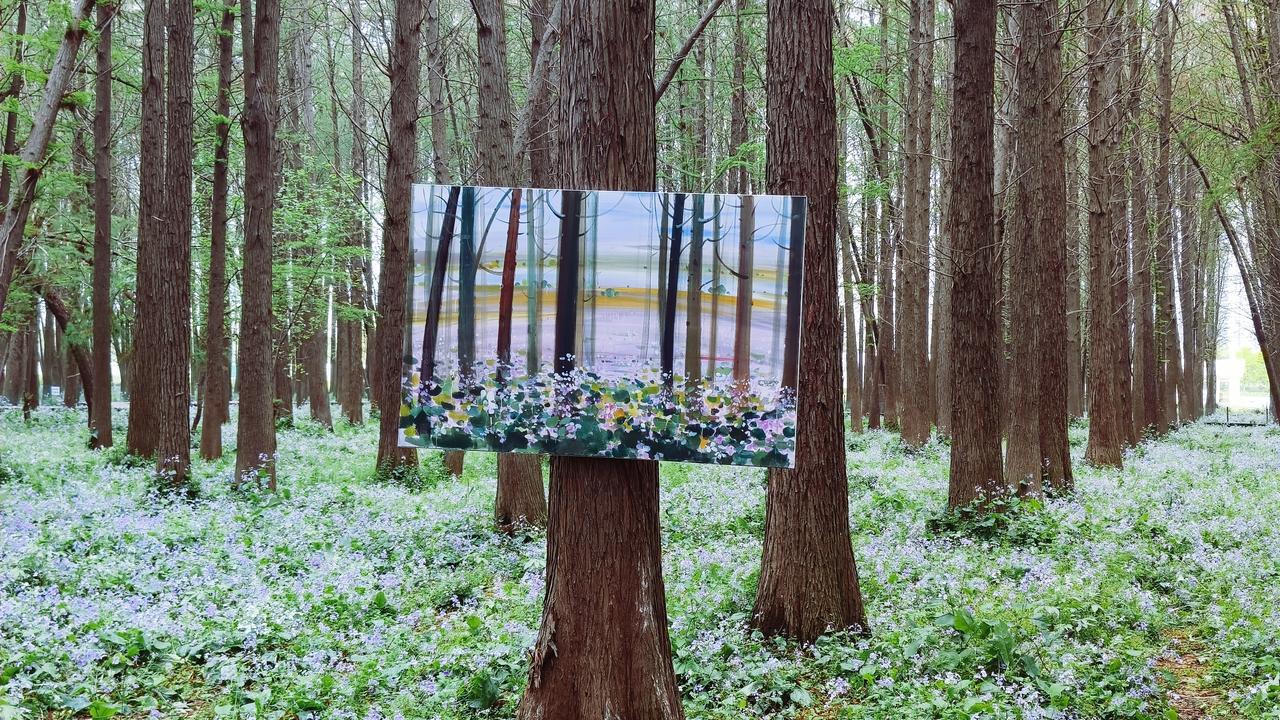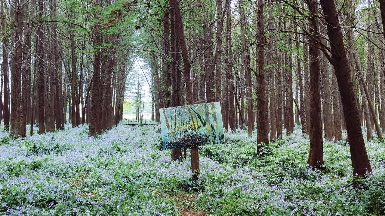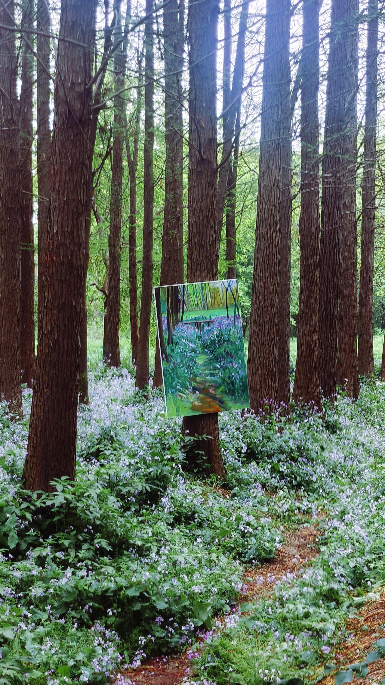 艺术家们将他们的得意之作,置于被紫色二月兰铺满的杉树之下。画布与美景融为一体,观小松鼠在树枝上跳跃,听林间鸟儿在欢歌笑语,闻湿地花草的沁脾芬芳,你有什么理由不为此流连忘返呢?