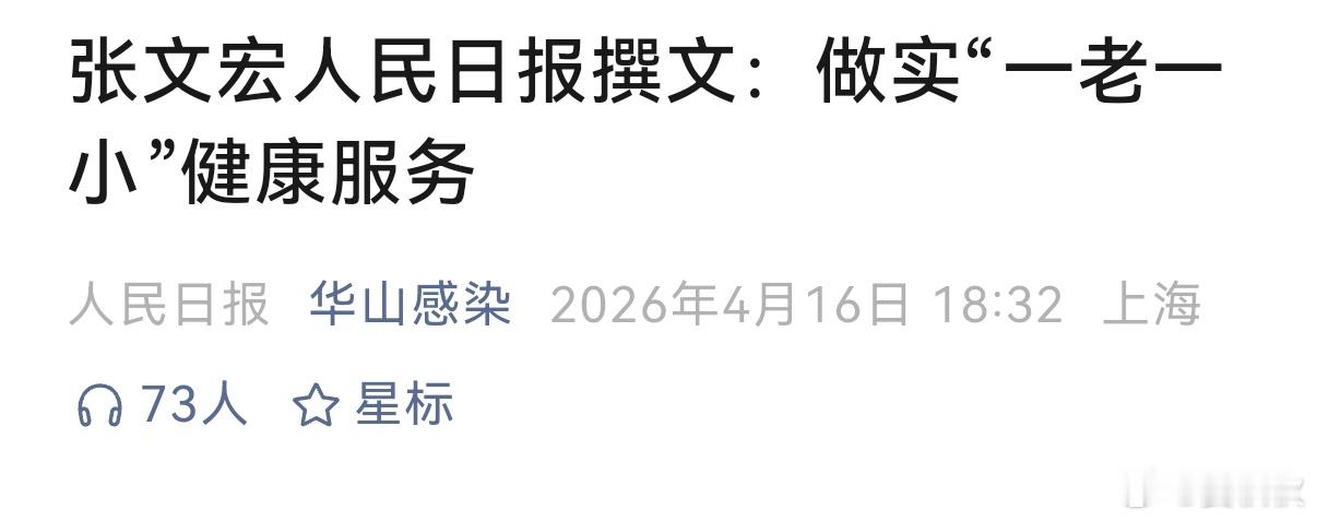 上海人熟悉的张文宏医生,在《人民日报》上写了一篇文章,标题是《做实“一老一小”健康服务》。简单来说,他是把照顾好老人和孩子,放在“健康中国”的大背景下,太慢慢阐述。张文宏的核心思路,非常清晰。健康管理,要围着人的“全生命周期”来转。比如,对老年人的健康,张文宏说,过去我们可能太看重“人均预期寿命”这个数字了,总想着怎么能活得更长。这当然没错,但是,老人们更应该追求的,是“健康预期寿命”。什么意思呢?就是说,我们不光要追求生命的长度,更要追求生命的宽度。老人家们不仅希望自己长寿,更希望到了八九十岁,还能自己穿衣吃饭、下楼遛弯,头脑清楚,心情愉快,有尊严、有活力的生活。这才是真正的“老有所健”。为了实现这个目标,张文宏旗帜鲜明地反对“被动康养”。有的老人,一生病就只知道吃药、打针、住院。张文宏说,这种模式救急可以,但长期来看,不仅个人受罪,整个社会的医保负担也会越来越重。那么,什么是“主动康养”呢?简单说,就是鼓励老年人通过科学的、适合自己的方式。来主动管理健康,其中最关键的一环就是科学运动。散步、打太极、做操,在专业指导下进行锻炼,成本低、效果好,还能让老人们精神头十足,真正激发生命的活力。说完“一老”,再看“一小”。张文宏表示,孩子们的身体和心理,都要健健康康的。我们不能只盯着孩子的考试分数,强壮的体魄和阳光、坚韧的内心,是孩子同等重要的财富。这不仅仅是医生的事儿,更是家庭、学校乃至整个社会需要共同面对的课题。理想很丰满,现实有哪些“拦路虎”呢?张文宏表示,最大的问题之一,就是大家对于“科学运动”这件事,知道的还是太少了,很多观念也不对。老人家们想锻炼,但往往“想练不会练、想练不敢练”,怕练错了伤身体。另一方面,我们的医生,特别是基层社区医生,在医学院校里很少学到怎么给病人开“运动处方”,导致他们面对需要运动康复的病人时,也是“想开不会开”。所以,要加快培养专业的“运动康复师”队伍。针对这些问题,张文宏提出了一系列接地气的建议。比如,国家要赶紧组织专家,制定出适合不同年龄、不同身体状况,特别是患有各种慢性病人群的运动指南和标准。比如,国家要对广大的基层全科医生进行专项培训,让他们掌握开运动处方和做营养指导的“硬本领”。比如,可以在有条件的社区医院里,尝试开设“体医融合门诊”或者“心理健康门诊”,让专业的指导能方便地走进千家万户。张文宏表示,希望到2035年,基层医疗卫生体系成为一个“防、治、康、养”环环相扣、融为一体的服务网络。这个网络,再配上深入人心、生动有趣的健康科普,就能在全社会培育出一种“我的健康我负责”的主动管理氛围。张文宏一老一小晏秋秋