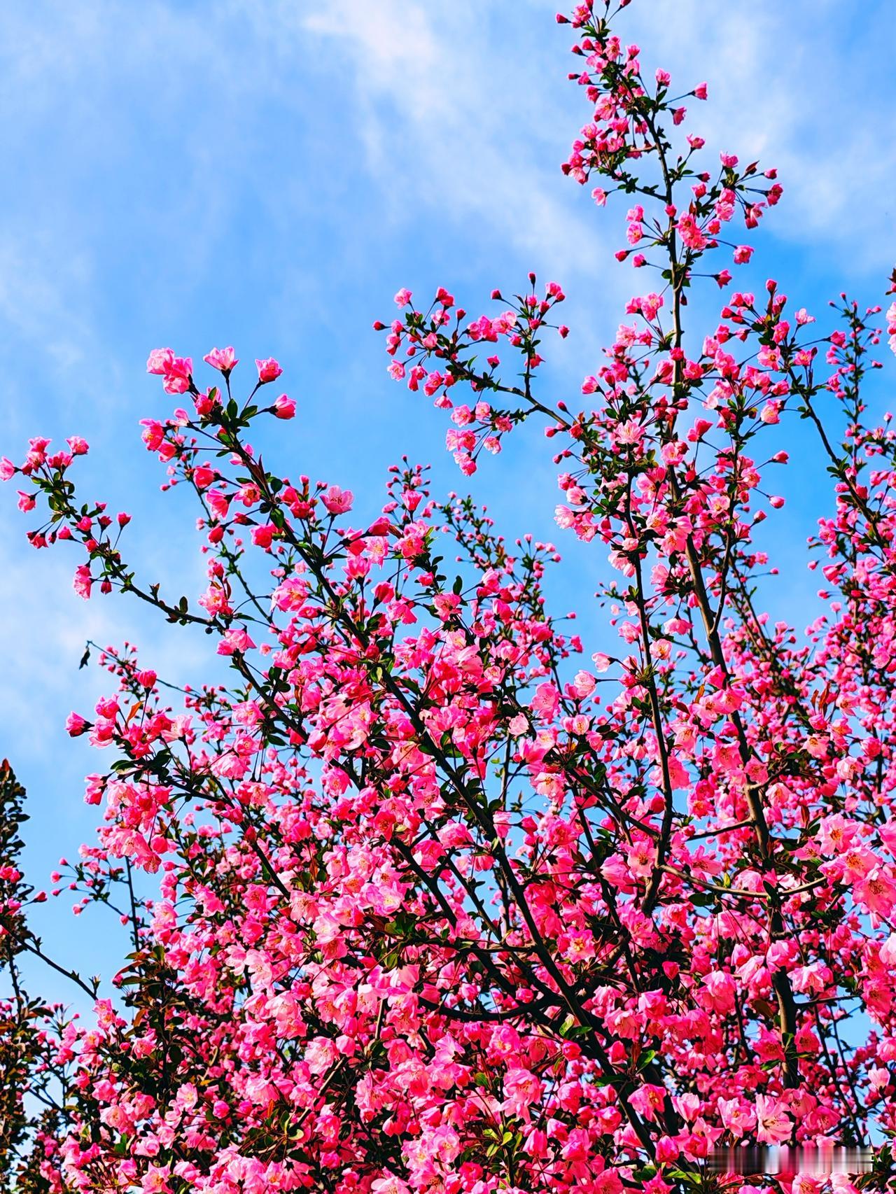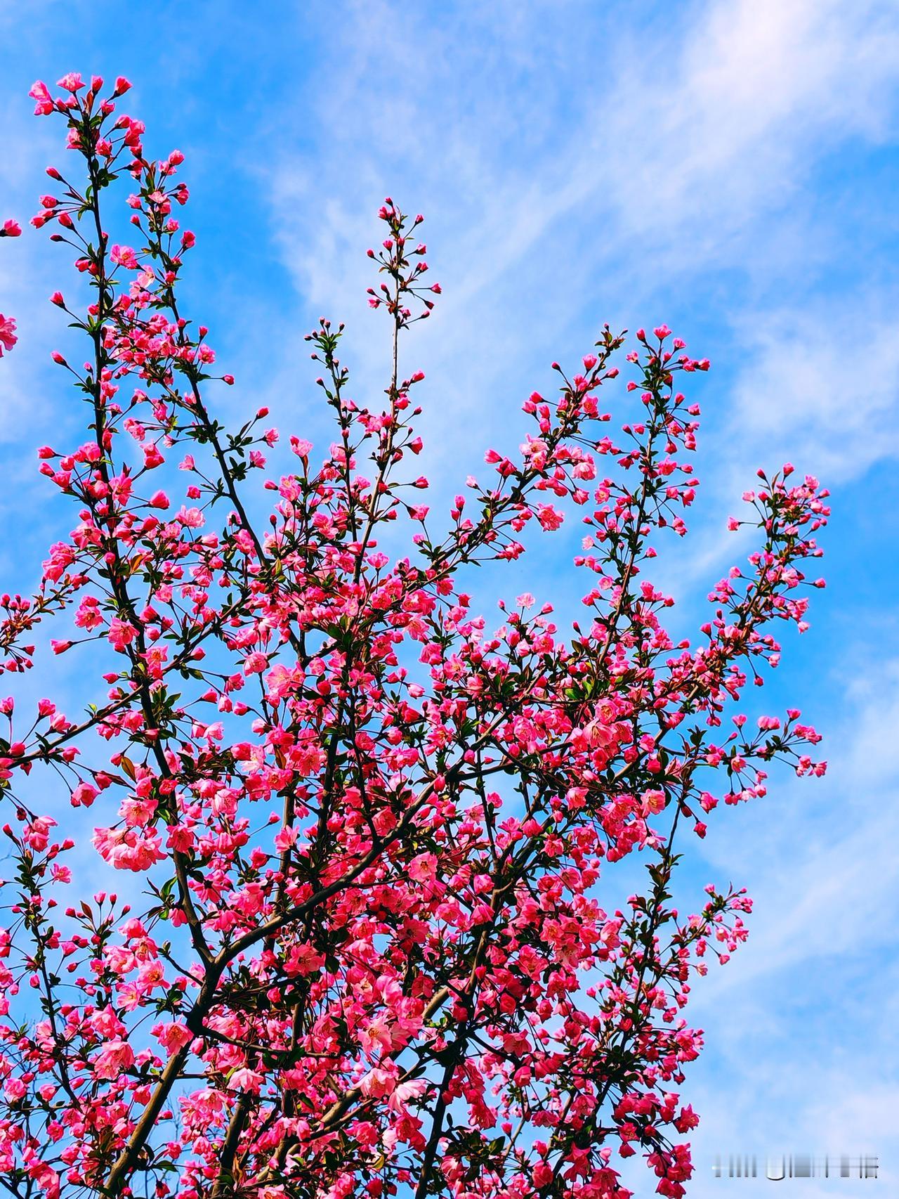春日盛开的粉色花海,蓝天白云相映成趣,美不胜收!🌸🌞