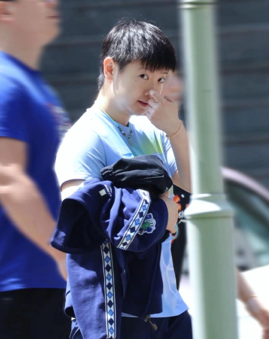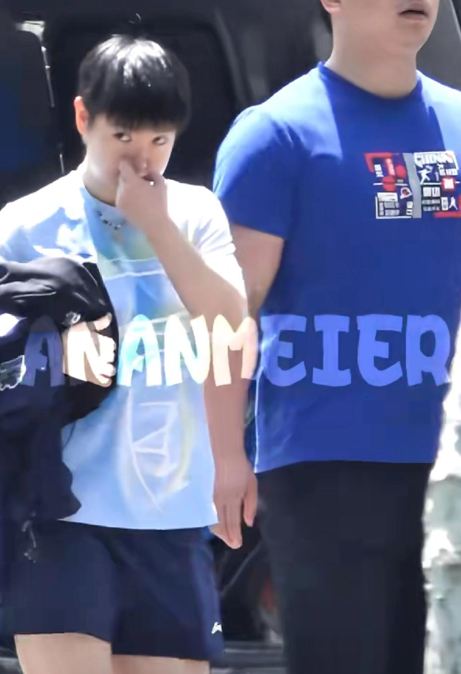 消失了两天的莎莎终于出现了, 这个蓝色T恤真好看, 显得她更白了。 她的出现了,