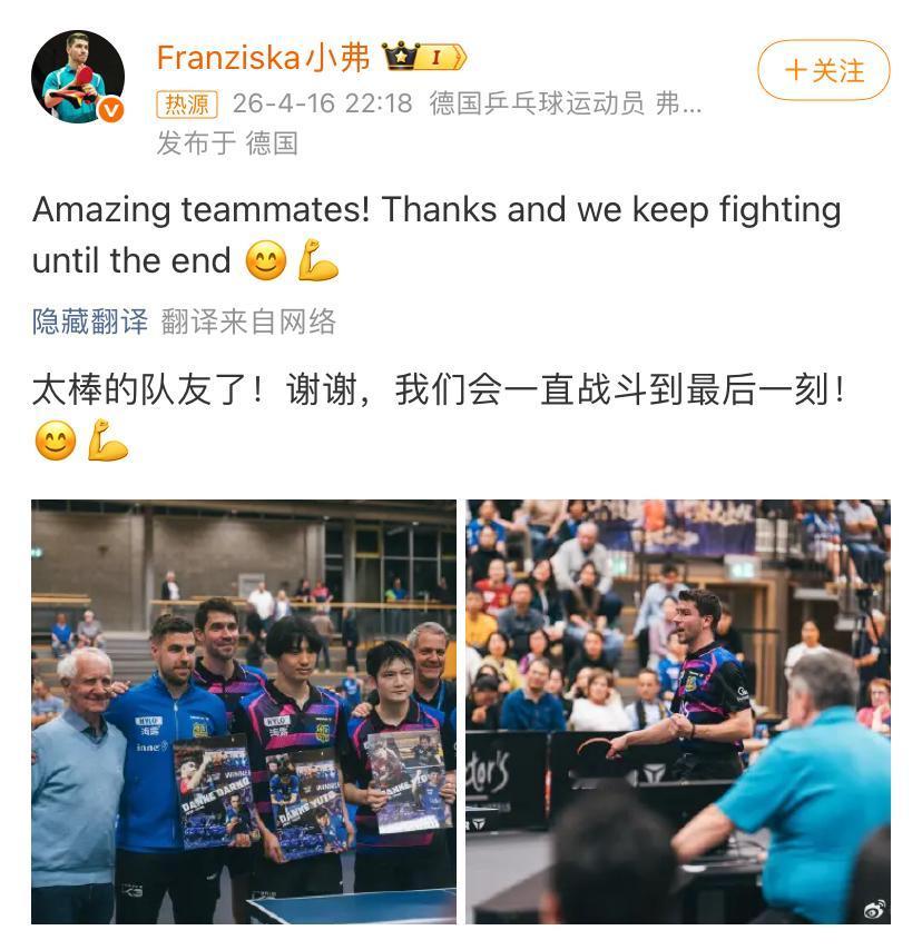 对比团队的队长佛朗西斯卡,更是发文感谢队友,每个人都是最棒的!