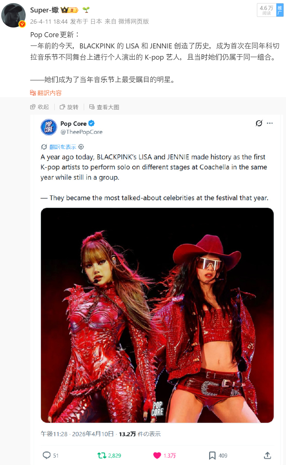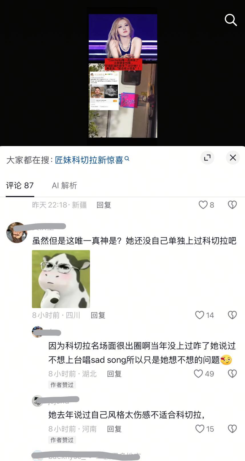Jenlisa没吱声呢,一个单人都没上过科切拉的,粉丝已经开始吹:科切拉唯一真神了