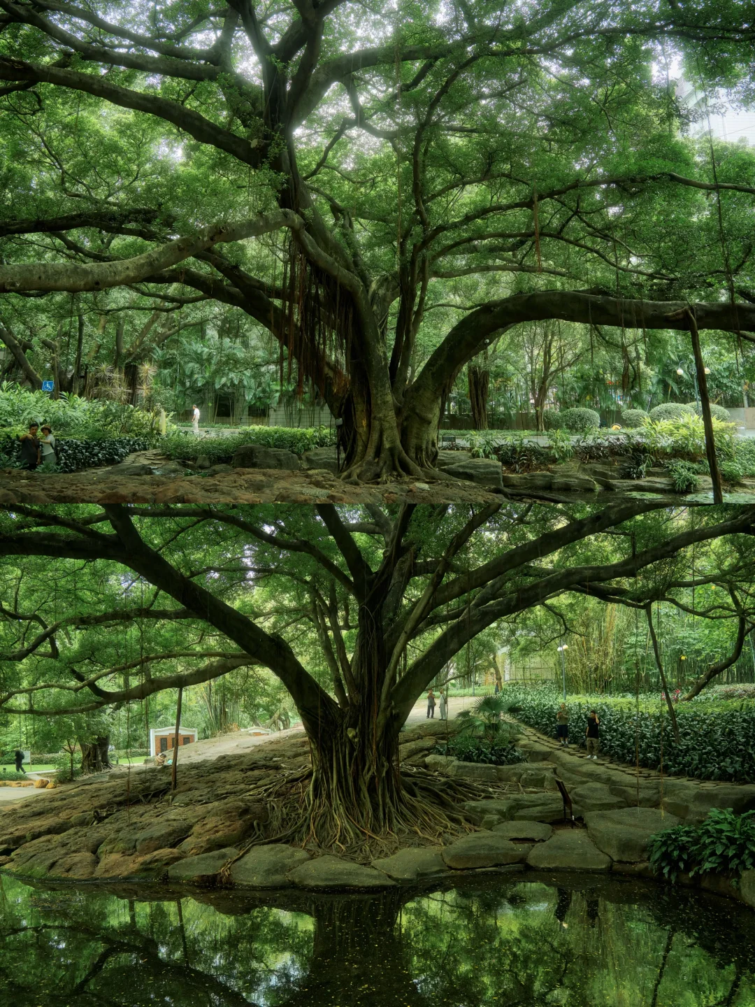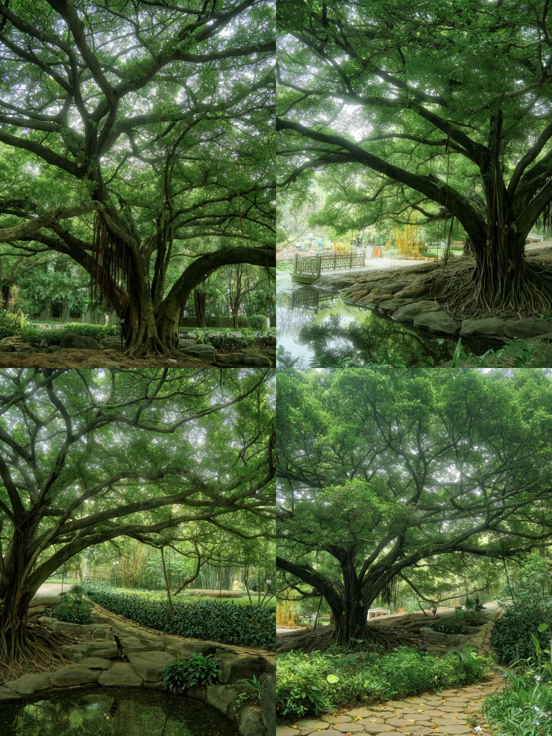 公园门口凉亭前一朵朵睡莲迎着春光盛放🪷公园深处的百年古榕苍劲挺拔,枝繁叶茂到撑起了一整片绿色天空🌳🌳仿佛把整个春天的生机都收拢在了这一方天地。