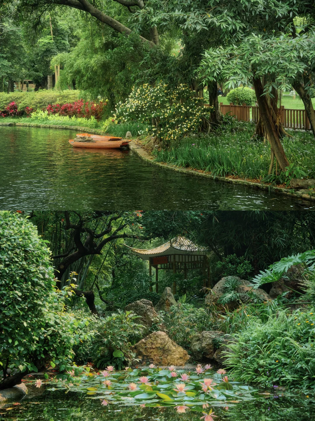 📷打卡点推荐:除了睡莲池和百年榕树下,园内还有竹林秘境、河涌上的古桥等都很出片
