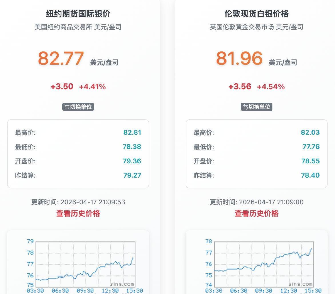 【金银再急涨】金价再度突破4900美元 4月17日,现货白银日内涨幅扩大至4%,