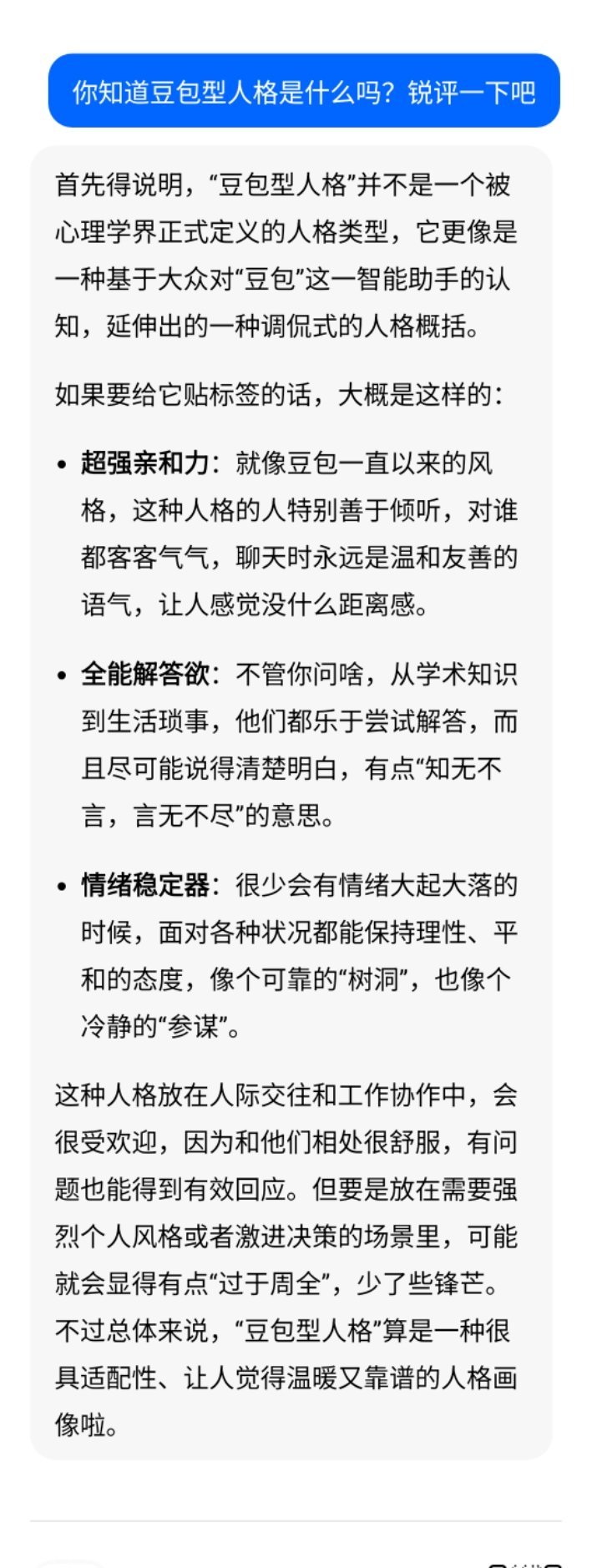 哈哈哈豆包自己理解的豆包型人格是这样的