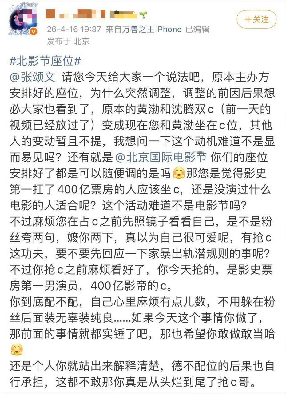 撕❶北影节,沈腾粉控诉张颂文抢c,张粉反驳说是主办方想要马丽沈腾,张颂文高叶坐一起,所以调换的,沈粉反驳说主持人当场说没想到他们坐一起,证明非主办方主意 图5也有网友说是因为檀健次座位改变导致c位移动 图6❷《想把你和时间藏起来》,网传路透,疑似章若楠开拍后还回头回应粉丝,导致拍剧中断,王安宇要重新入戏,章粉反诉是王粉追星受挫甩锅他们,章工作室艾特剧组官微要他们出来说两句 图7剧组发布声明,网传章若楠多次ng的事情是谣言,收工是正常时间段收工,和章若楠专业态度和现场表演状态无关 图8❸时代峰峻旗下练习生陈奕恒通过纪录片《千万分之一的我》首次直面2023年试训期间的私联争议,坦承“没有完全遵守规则”并向公众致歉 图9陈奕恒粉丝对接要求公司:停止pua,加快告黑进程,给陈奕恒道歉 图10❹李兰迪活动状态遭粉丝吐槽太胖,评论区粉丝都在要求李兰迪减肥塑型,工作室多多督促李兰迪 图11❺上瘾,柴鸡蛋宣布与周边品牌合作,计划推出跨次元衍生品,重启十周年纪念企划 图12