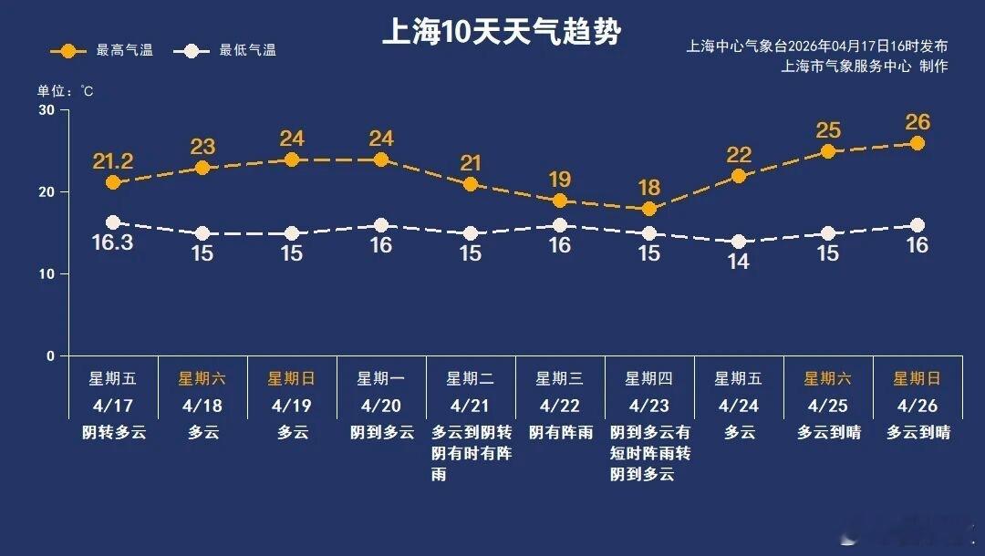 上海的这个双休日(18、19日),请您无论如何,一定要出去走走。这不是一句客套的寒暄,而是春和景明之中,拥抱春天的顺应天时。根据“上海天气发布”,明天(18日)多云,气温在15到23℃之间。后天(19日)阴到多云,气温15到22℃。双休日两天,风力不大,阳光和煦又不至于暴晒。而一直到下周二,上海都将以多云天气为主,这是老天爷留给大家的“踏青窗口”。从下周二(21日)开始,受天气系统影响,上海将逐渐转为阴天。未来一周的气温总体平稳,早晚稍凉,在14-16℃左右,白天最高则在20-24℃之间徘徊,正是那种“暖而不燥”的天气。结合这样的天气,对普通上海人来说,要重视以下几个生活细节。第一,认真对待春季的“头号麻烦”——花粉过敏。清明前后,柏树、杨树、柳树等风媒植物的花粉,会大量飘散在空气中,对于过敏体质的朋友来说,这可能是“会呼吸的痛”。打喷嚏、流鼻涕、眼睛红肿发痒,甚至引发哮喘。外出戴口罩,这是很有必要的提醒。第二,还是要“春捂”。这句老话,很有智慧。四月的天气,最大的特点就是早晚温差大,可能一天之内体感温度变化明显。所以呢,不要急于换上单薄的夏装。当昼夜温差大于8℃,或者日平均气温低于15℃时,“捂一捂”很有必要。第三,别被春日暖阳的“温柔”假象欺骗。这个时节的紫外线强度,已经在悄然攀升。如果计划长时间在公园、湖边等开阔地带活动,防晒措施必不可少。第四,提防那些随着气温回升而活跃起来的“小东西”。在林间、草地、水边漫步时,蚊虫也开始出没。可以喷洒或涂抹驱蚊液,尽量穿着浅色的长袖衣裤。第五,还要聊聊“吃”这件大事。春游常常伴随着野餐,户外环境复杂,食品安全尤为重要。自带食物的话,优先选择密封性好、不易变质的,比如饭团、三明治、洗净的水果,尽量避免带生冷的海鲜、沙拉等。很多人看到鲜嫩的野菜会心动,但切记不要随意采摘和食用你不认识的野菜,有些有毒植物和可食用野菜长得非常像,误食可能导致中毒。野餐前后,一定要用流动水和肥皂洗手,或者携带免洗洗手液,把好“病从口入”这一关。莫待风雨至,空叹春已深。这个双休日,让我们带着对传统的敬意,对健康的负责,对生活的热爱,出发吧。
