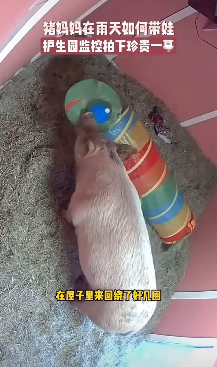 此时外面正下着雨,没过多久她起身走了出去,竟然从外面带回来一个大号玩具。原本安静的小猪立刻好奇凑了过来,猪妈妈叼着玩具的一头带着孩子们一起玩耍,在屋子里来回绕了好几圈,小猪们兴奋地跟在后面撒欢。要知道猪妈妈不久前因为孩子夭折。