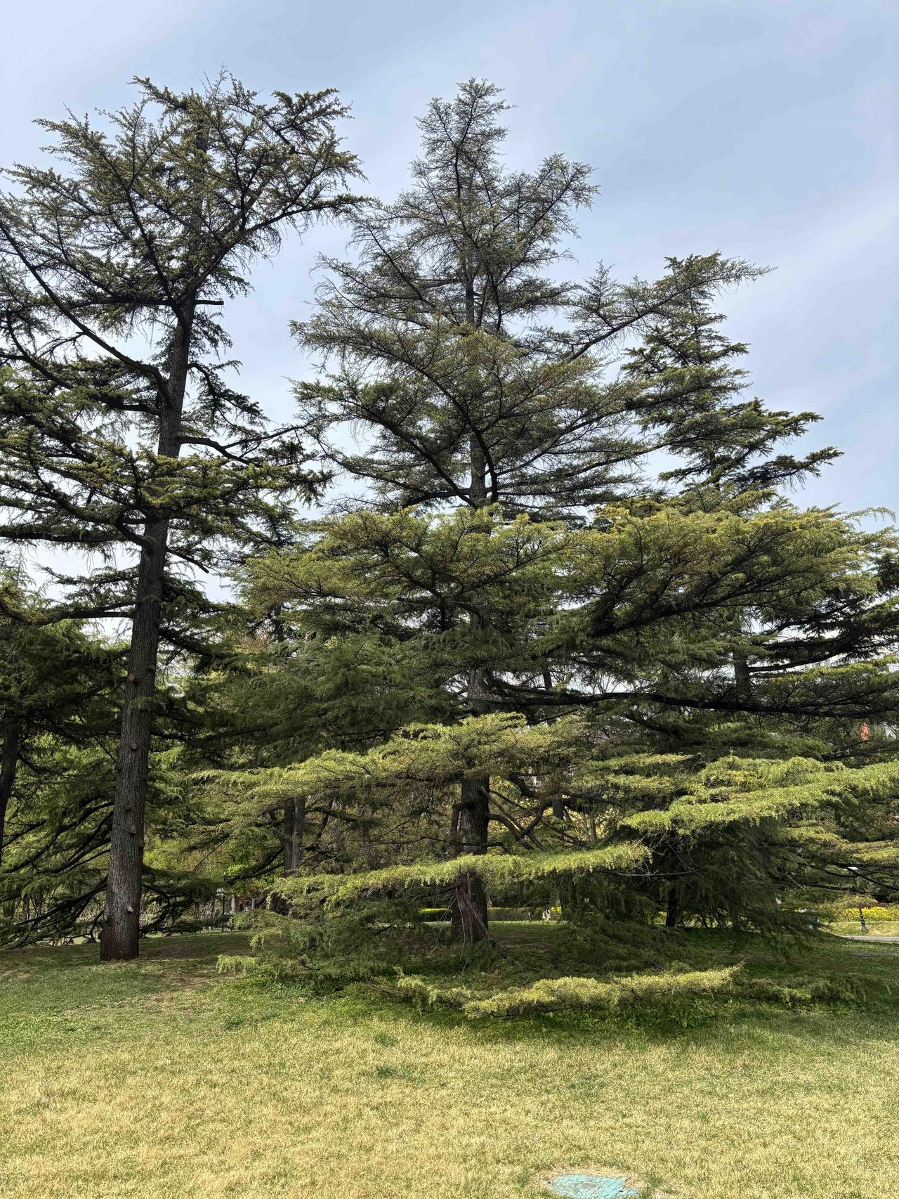 随拍公园花草树木人定湖公园北门口的几棵参天松柏,四季常青,成了公园一景,松柏生长