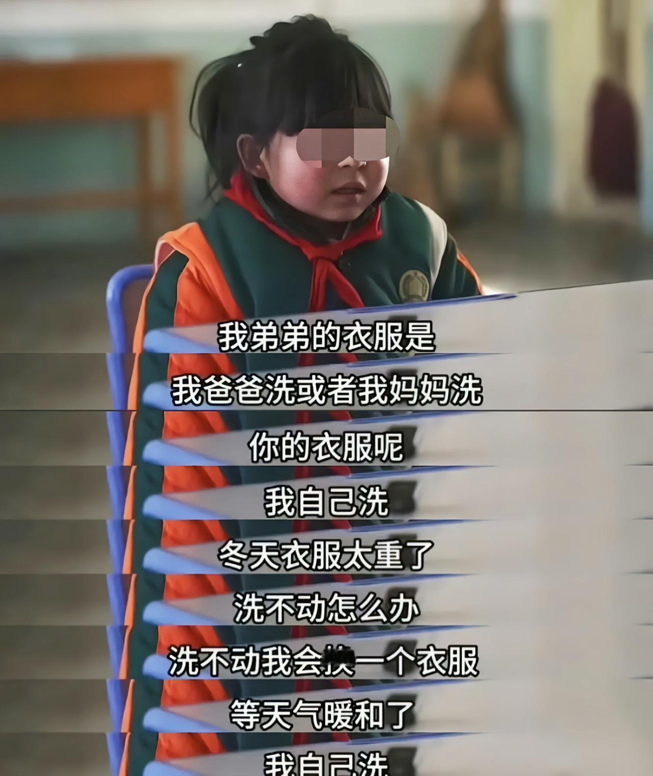 “弟弟的衣服爸妈洗,我的自己洗,冬天洗不动就等到暖和了再洗……”“这个世界有吗?我想,我肯定找不到!”7岁小女孩麻木的眼神中,看不到一丝春天该有的生机!