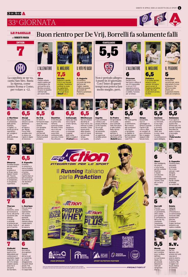 米兰体育报赛后评分如下国际米兰3比0卡利亚里国际米兰3连胜热点现场 最佳巴雷拉