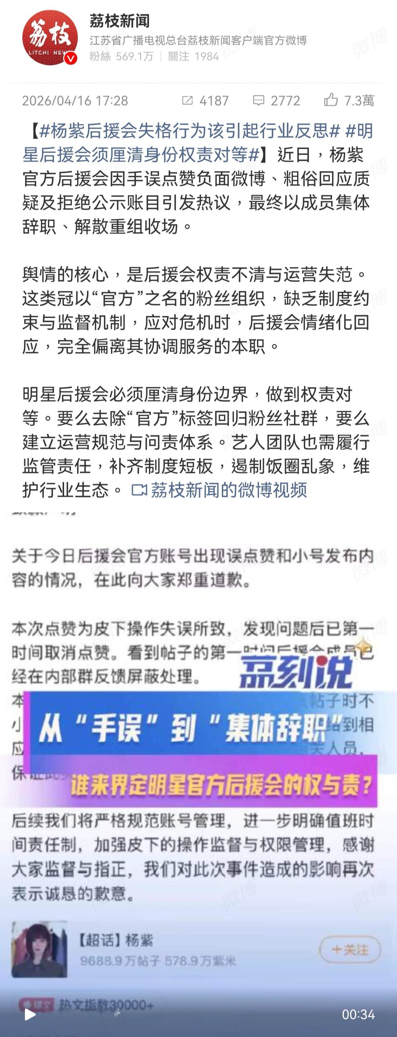 杨紫后援会失格行为该引起行业反思 最想知道账目后续,然后我记得后援会早就得有工作室参与了