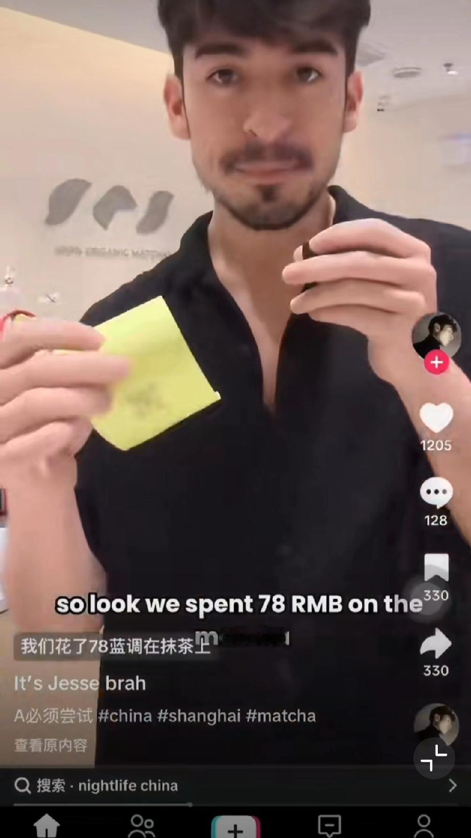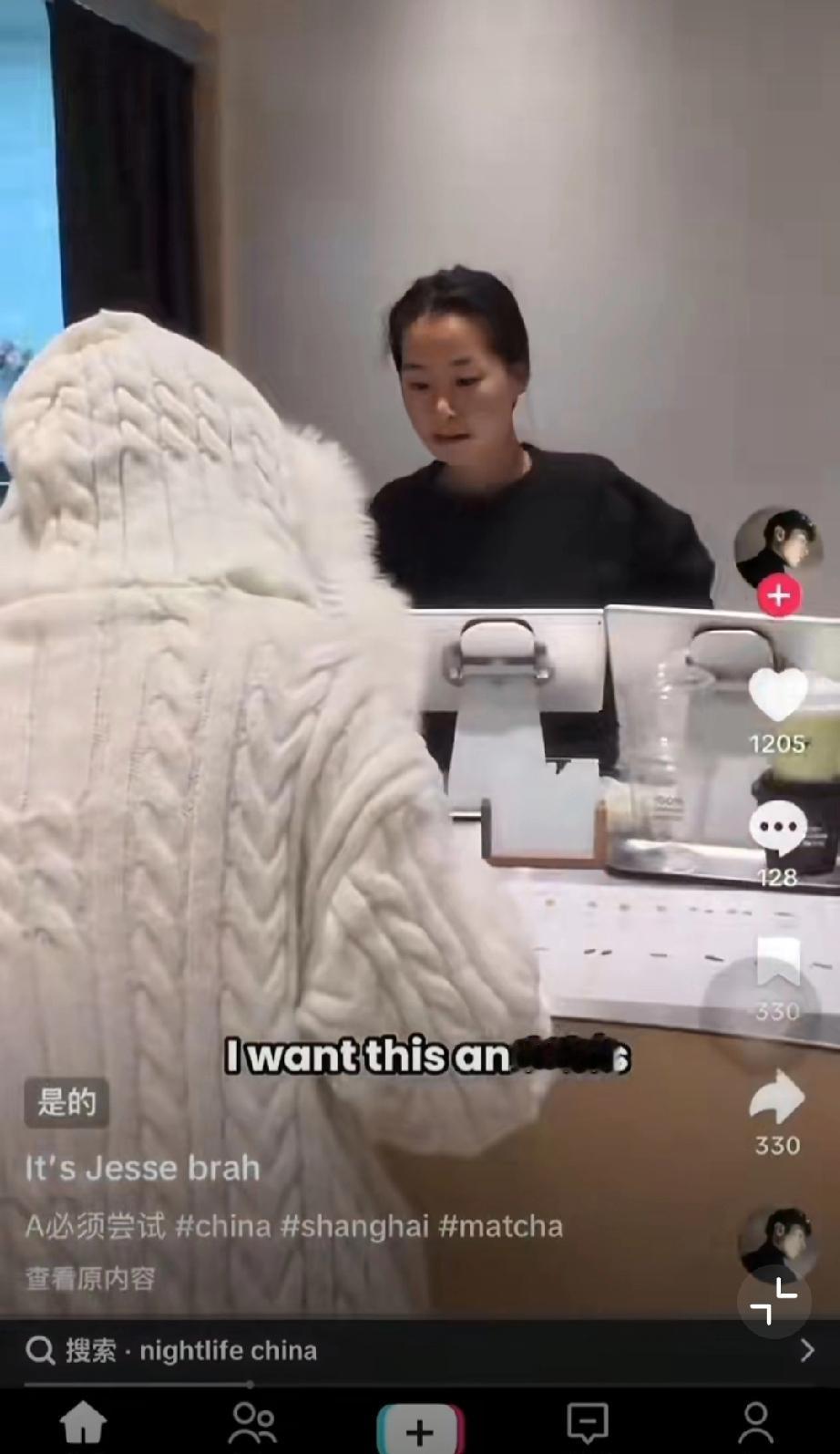 外国男子在上海品尝奶茶,旁边的中国女子直接舔男子手,男子称只是朋友…外国友人游上海 老外小哥 老外奶茶店