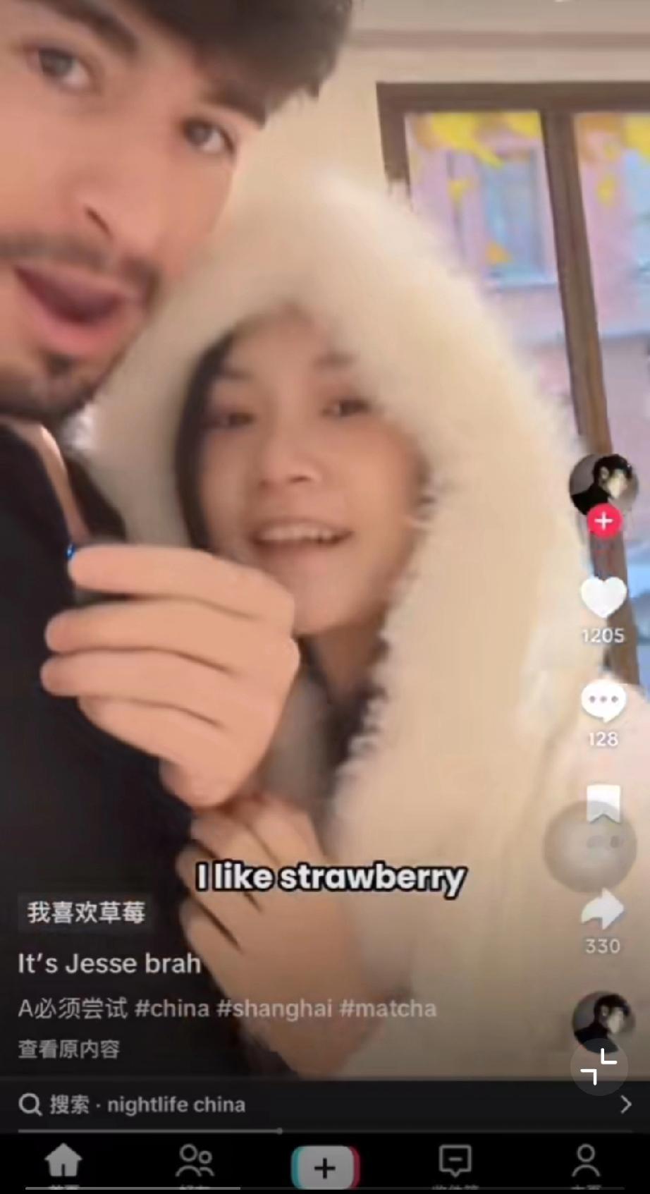 外国男子在上海品尝奶茶,旁边的中国女子直接舔男子手,男子称只是朋友…外国友人游上