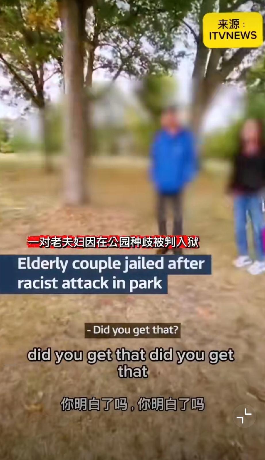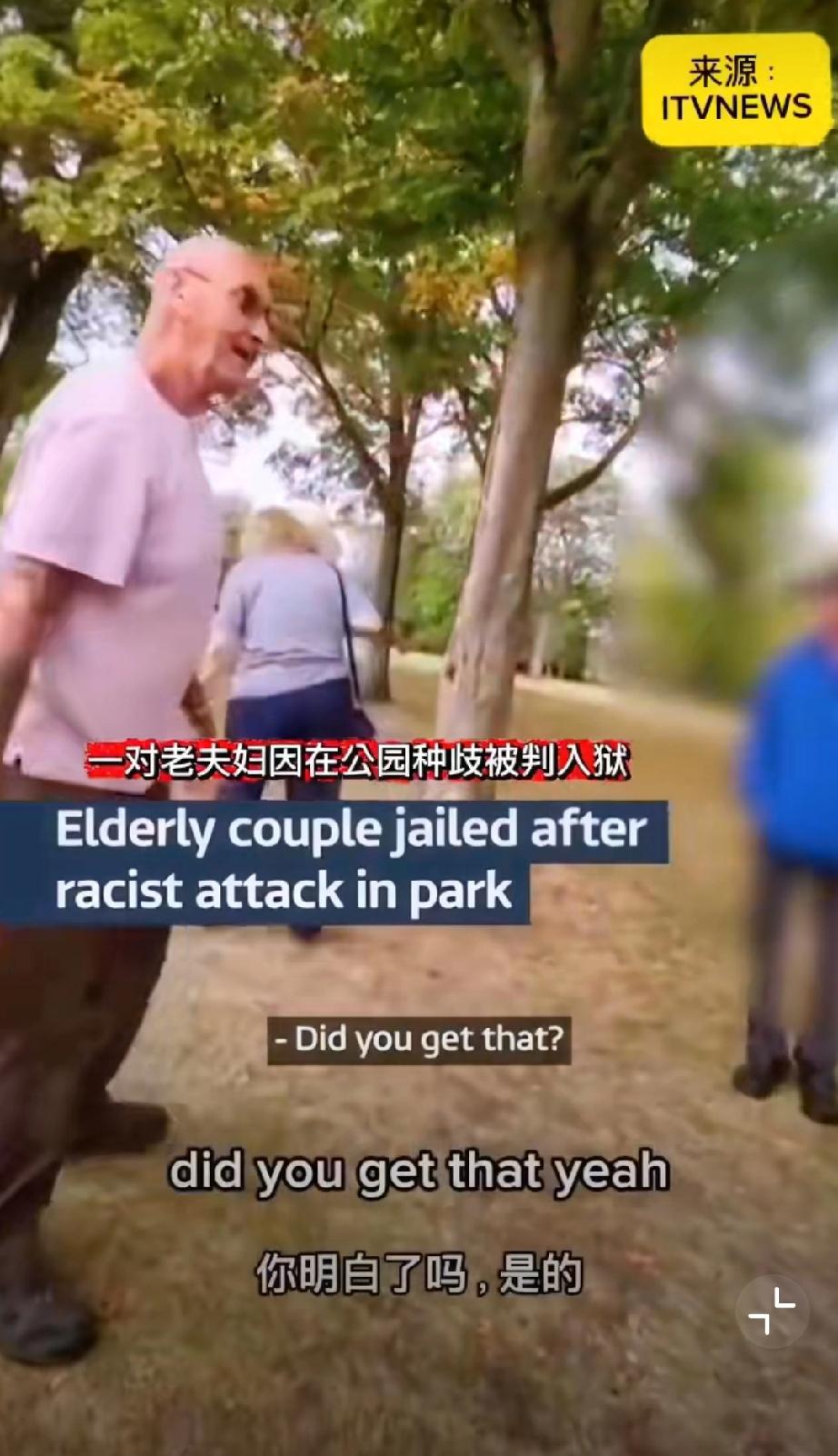 好!英国一对老年夫妇因在公园内对亚裔护士进行种族歧视辱骂和泼水而被拍下视频,现在被判入狱!
