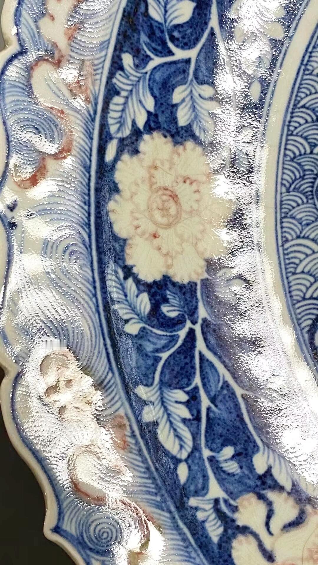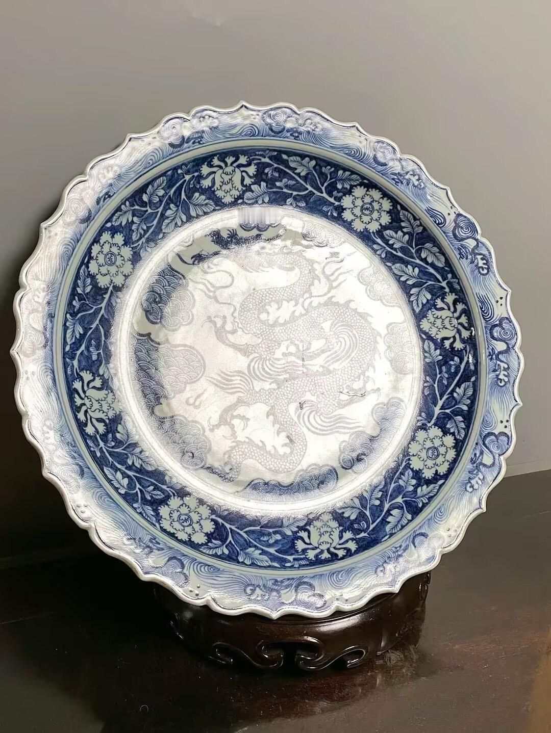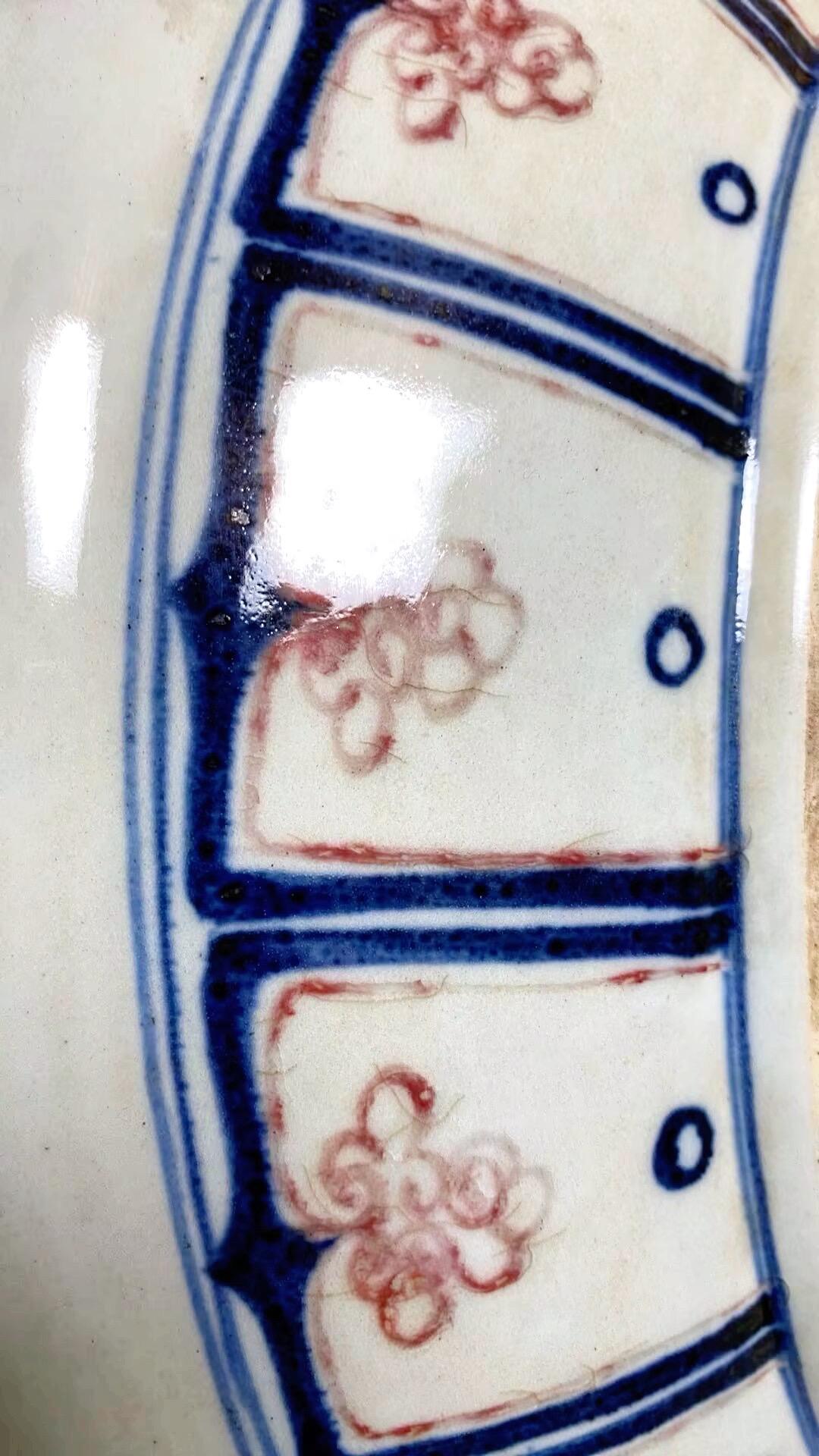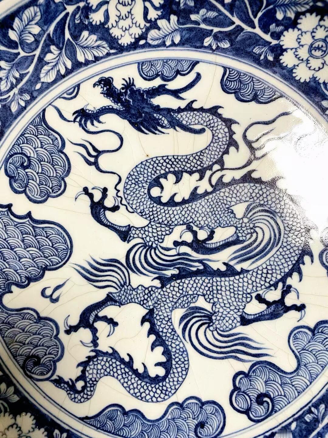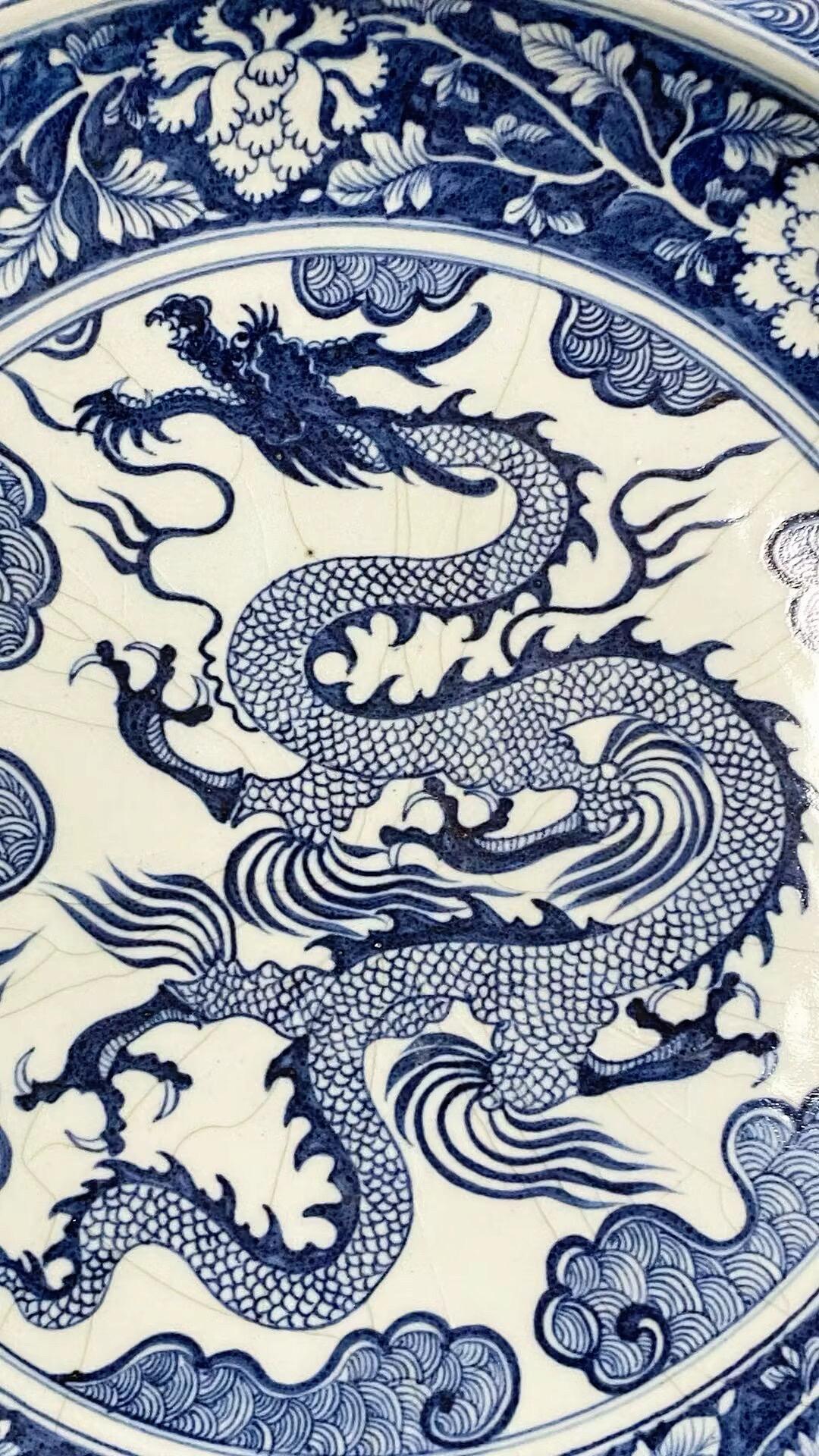 元青花龙纹菱口大赏盘,元代青花釉里红龙纹菱口赏盘;收藏十几年的两件宝物,真正大开
