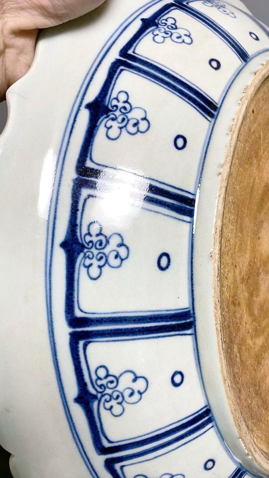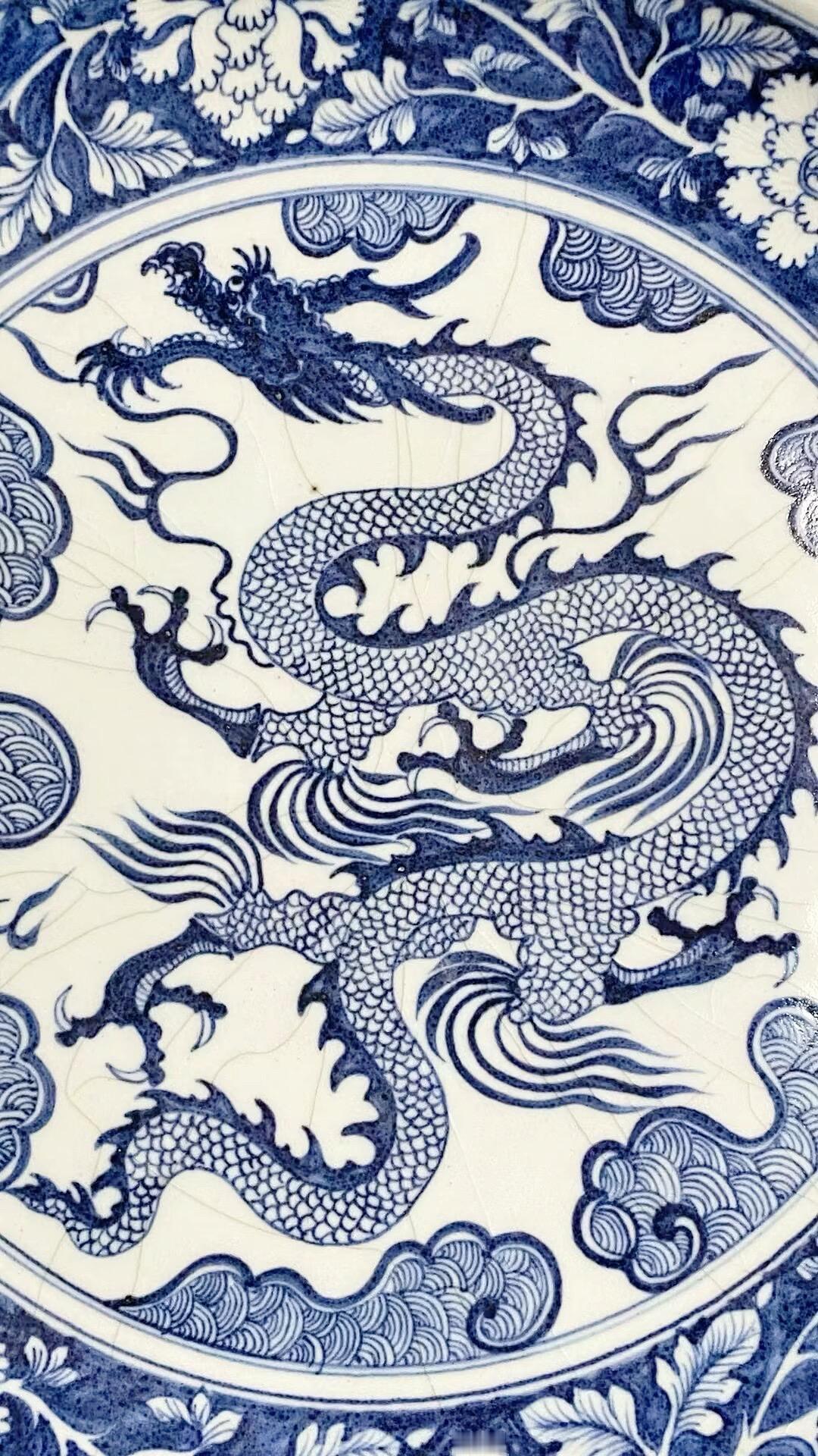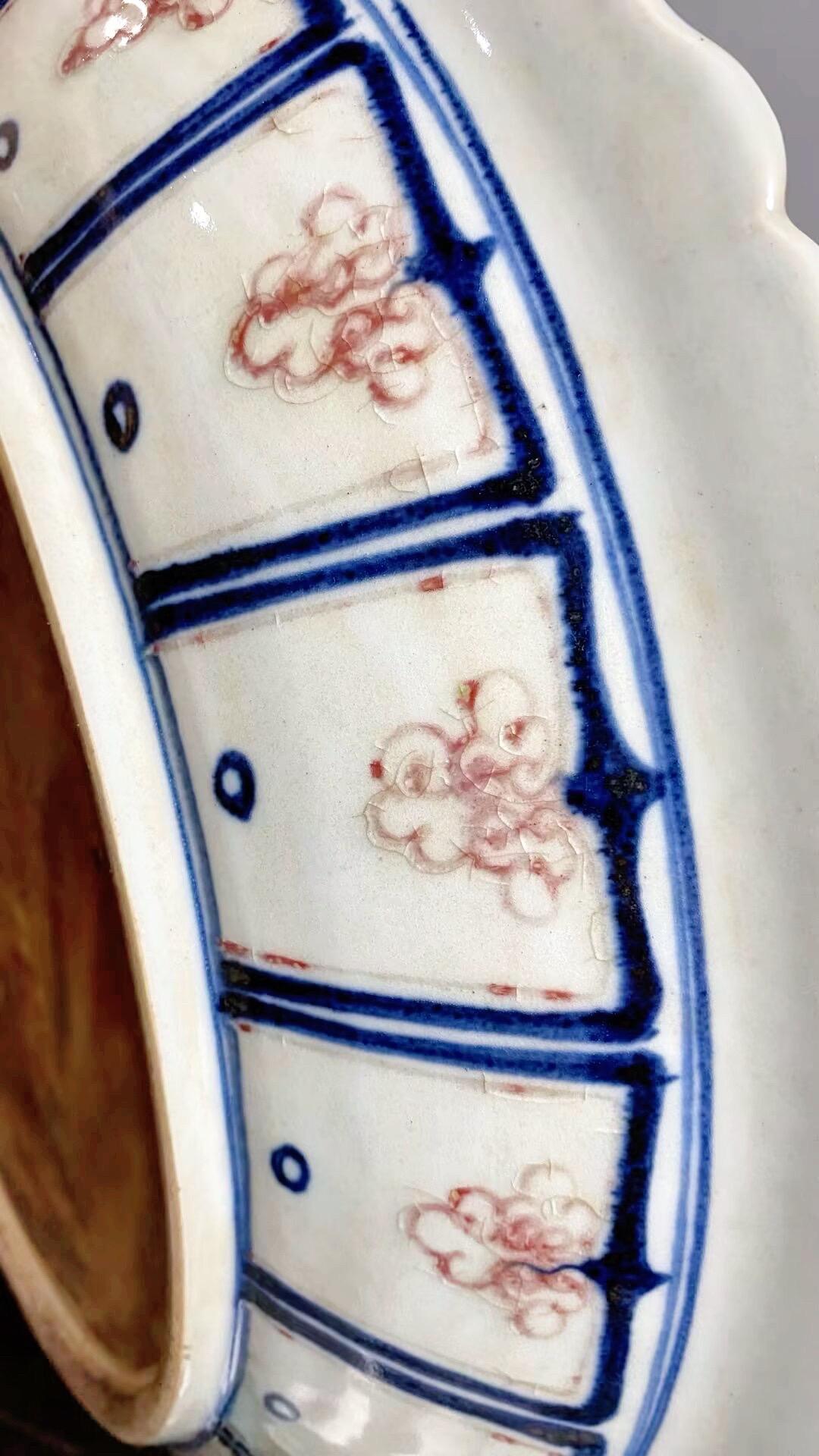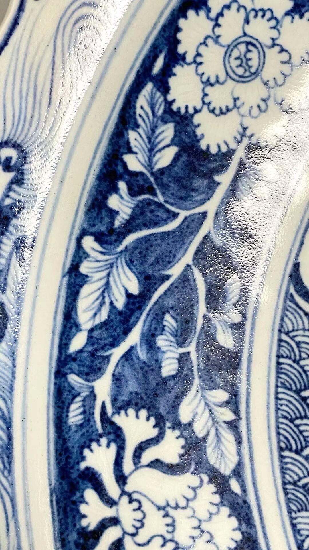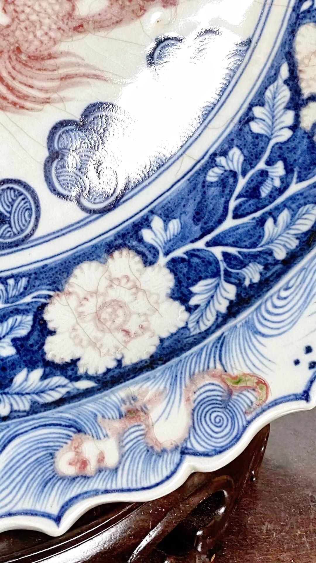 元青花龙纹菱口大赏盘,元代青花釉里红龙纹菱口赏盘;收藏十几年的两件宝物,真正大开