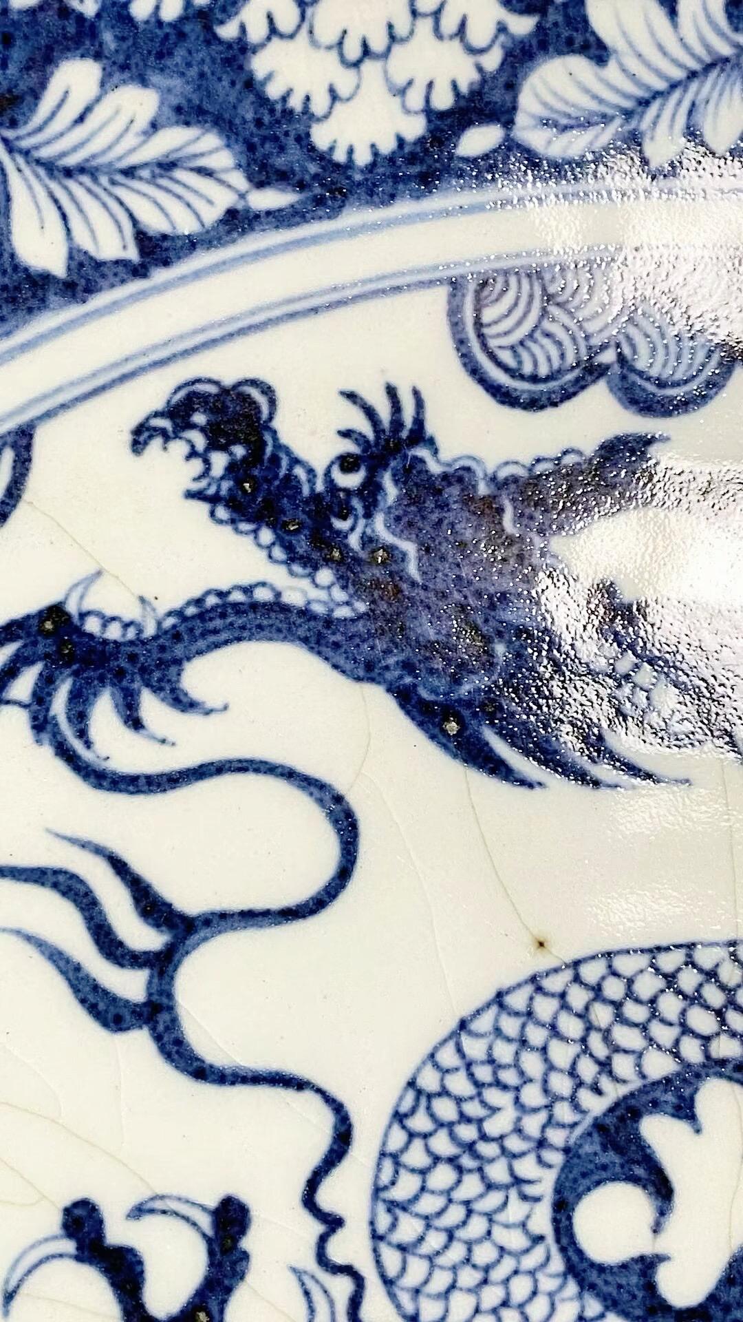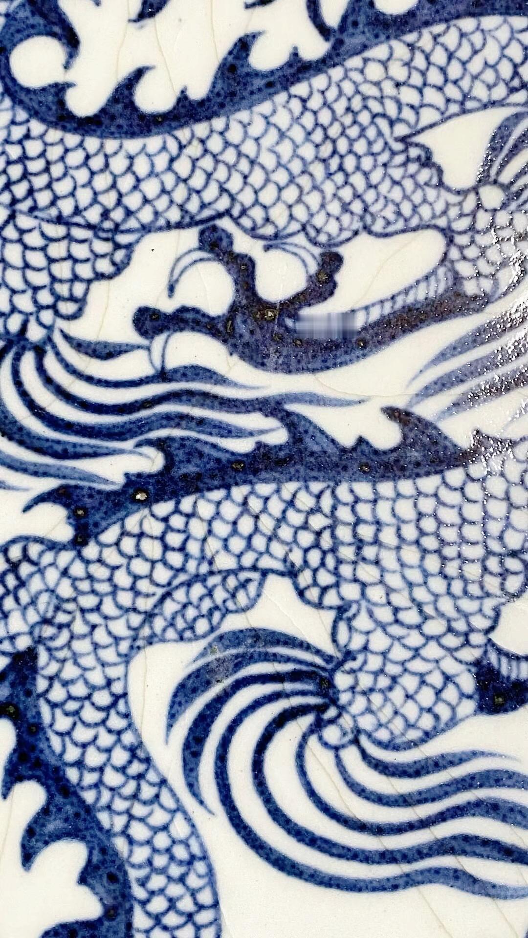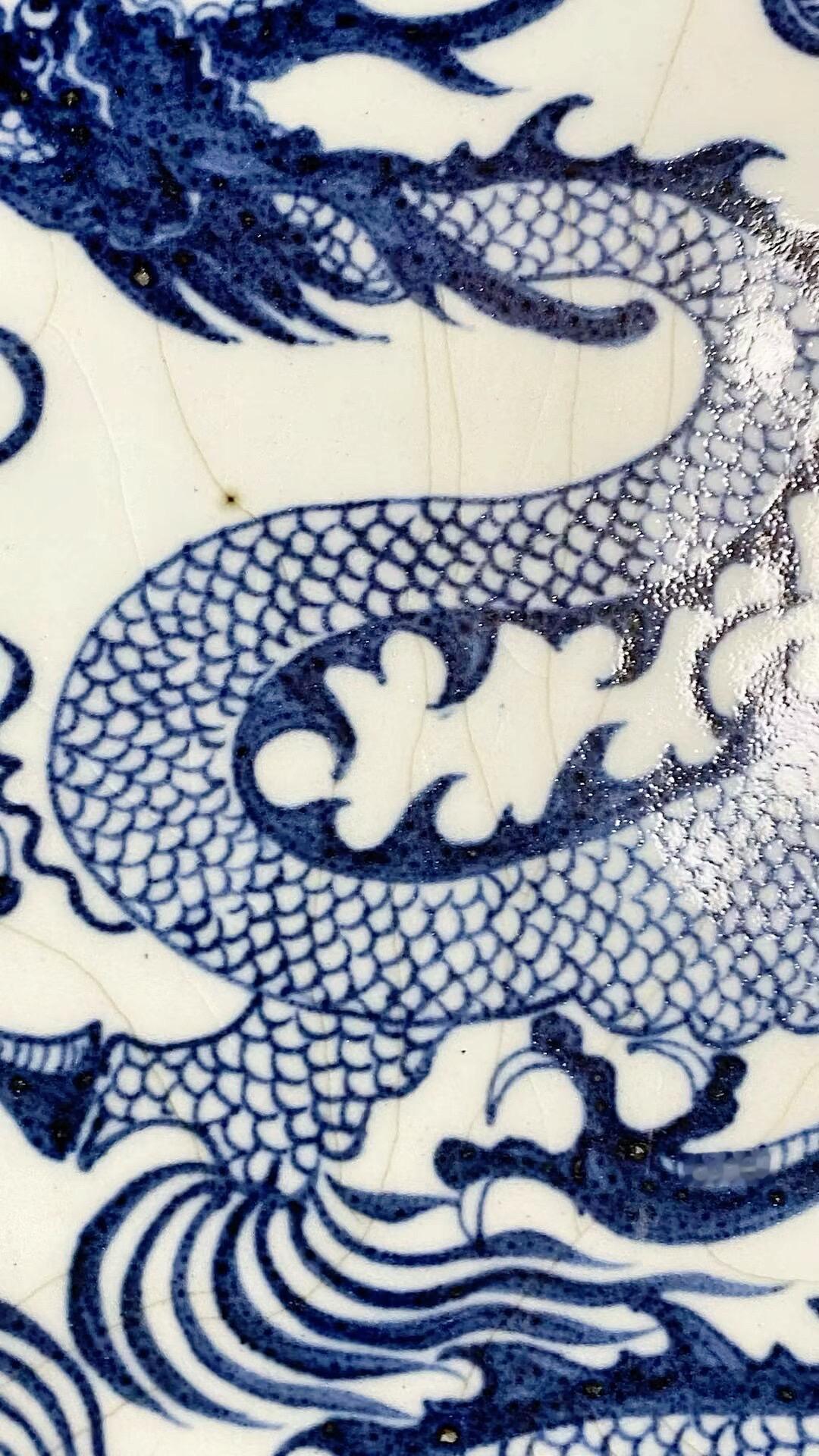 元青花龙纹菱口大赏盘,元代青花釉里红龙纹菱口赏盘;收藏十几年的两件宝物,真正大开门的元青花精品!胎釉老化明显宝光笼罩,胎釉微观老化明显、胎骨老化灰常老气!元青花 瓷器 收藏 古董