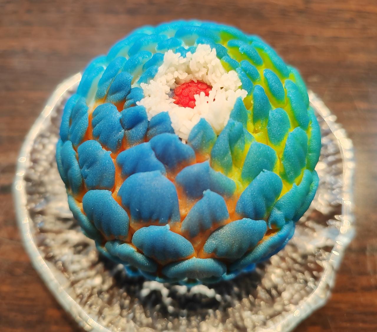 佛果,很多人见过却没吃过!大家看了这个果,一是充满了美感,另外就是不但好看,还可以吃!这个果,很多人不会想到,竟然是清远一个艺人亲手做的,那个花蕊全是人工一点一点手工剪出来的。