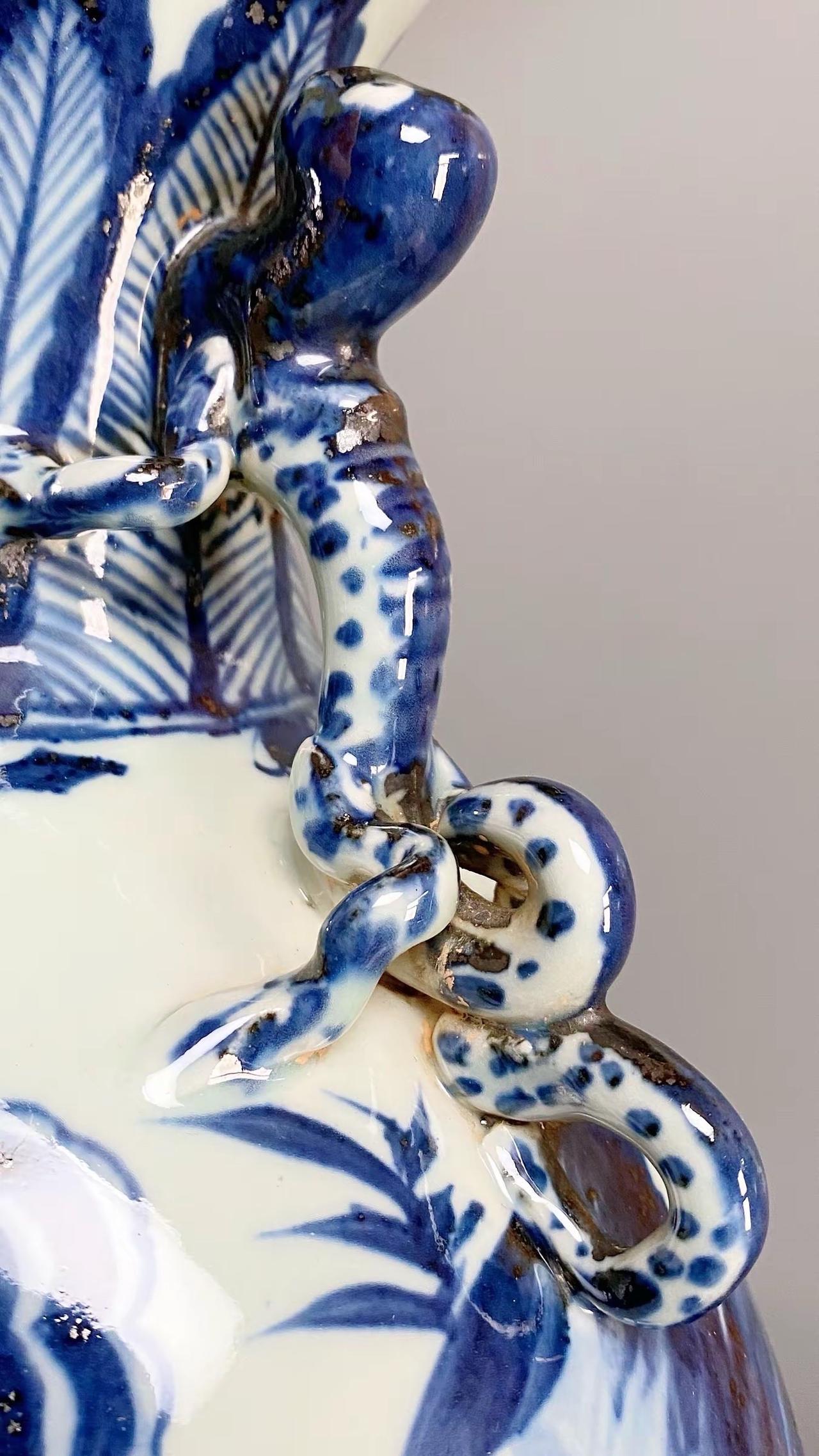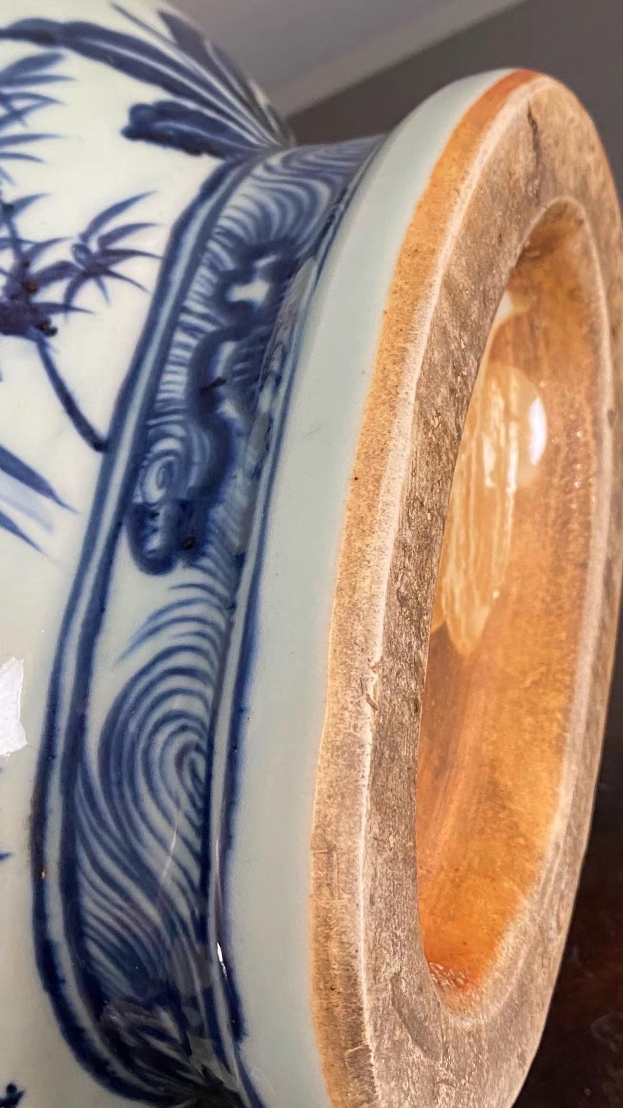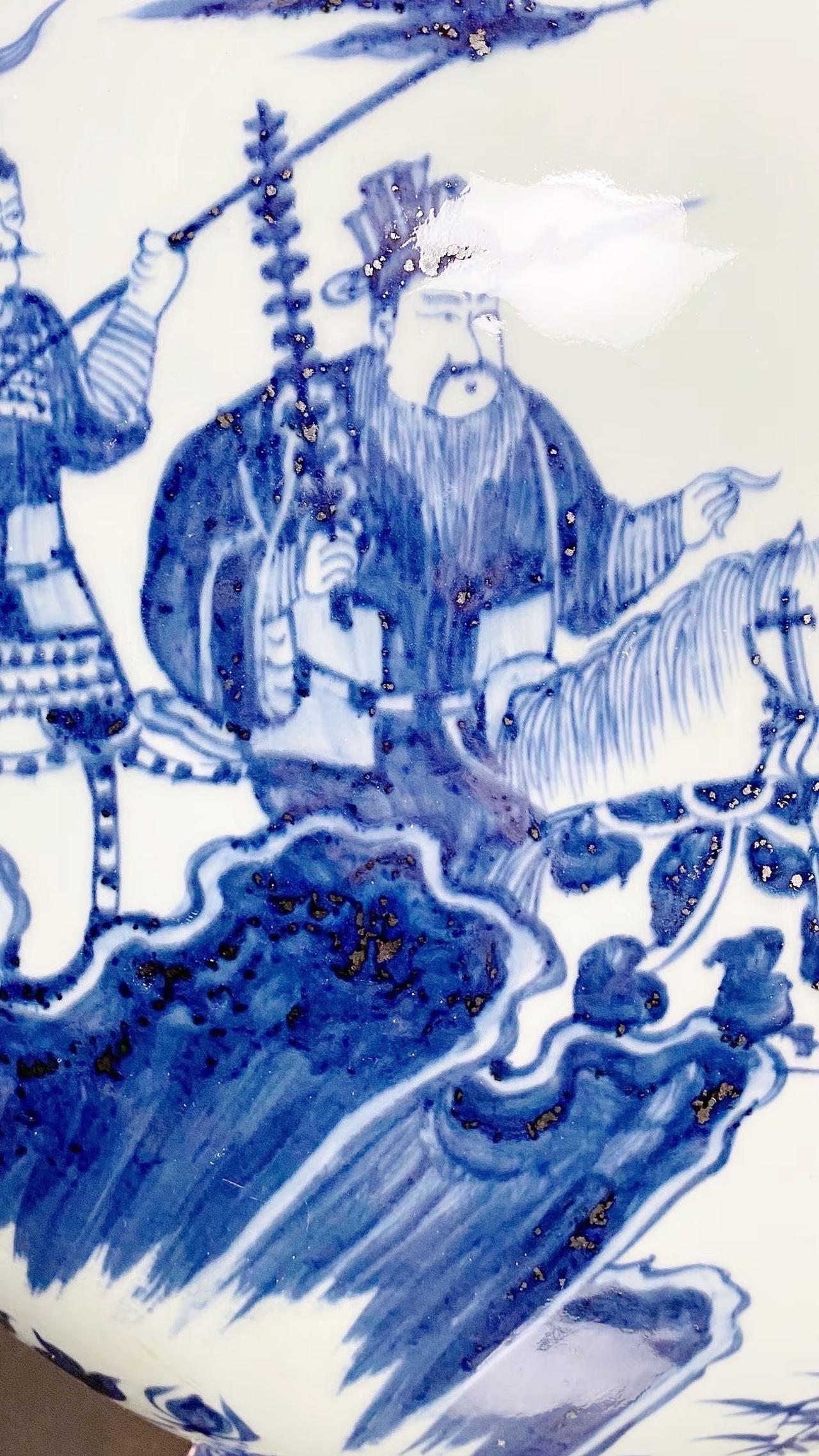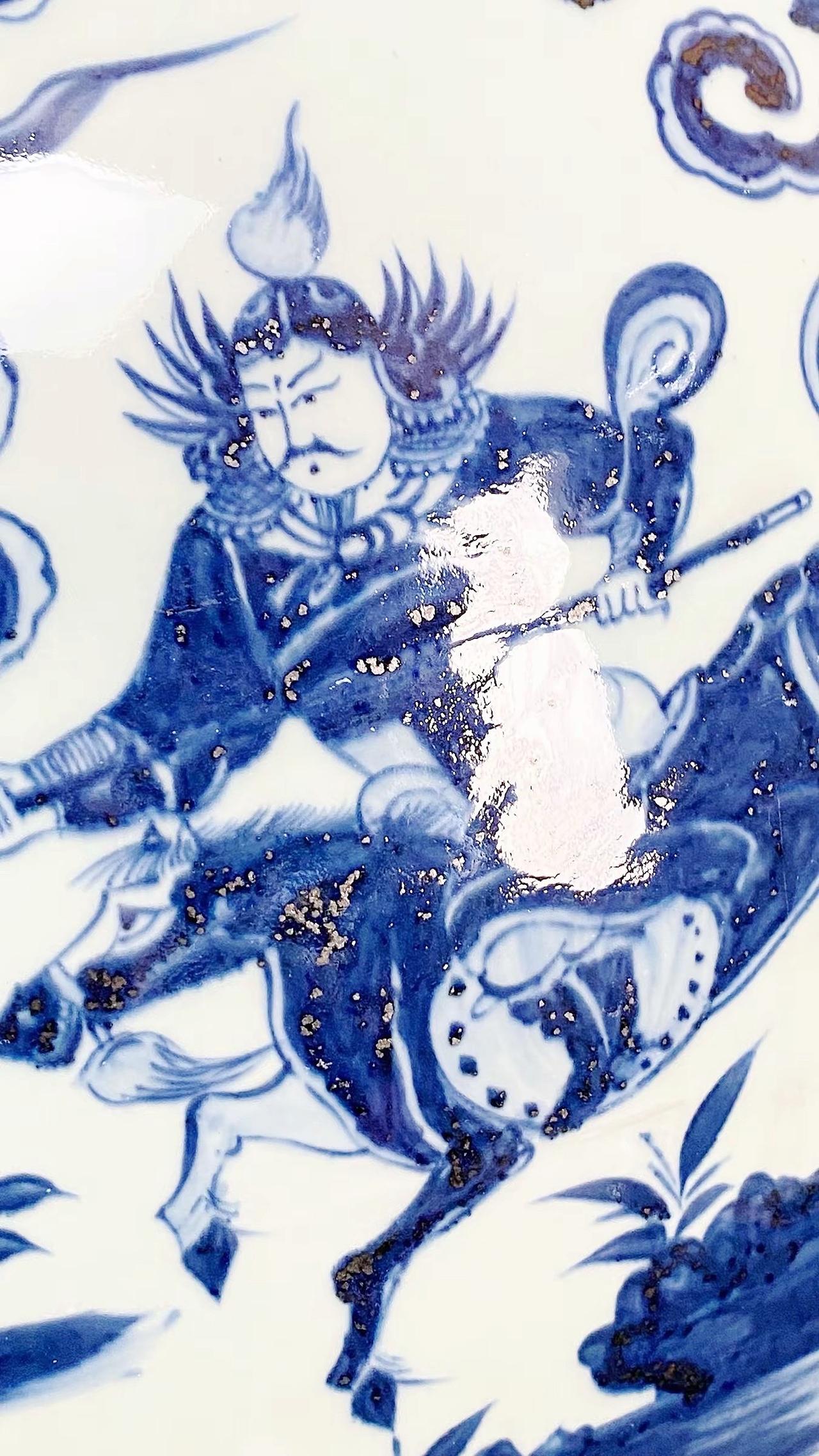 元青花唐太宗螭龙耳抱月瓶收藏,苏麻离青进口料发色非常漂亮蓝中泛紫,此件器物器型硕大画工精美;微观老化痕迹明显,青料特征开门、堪称大开门的元青花精品!元青花 瓷器 古董 收藏