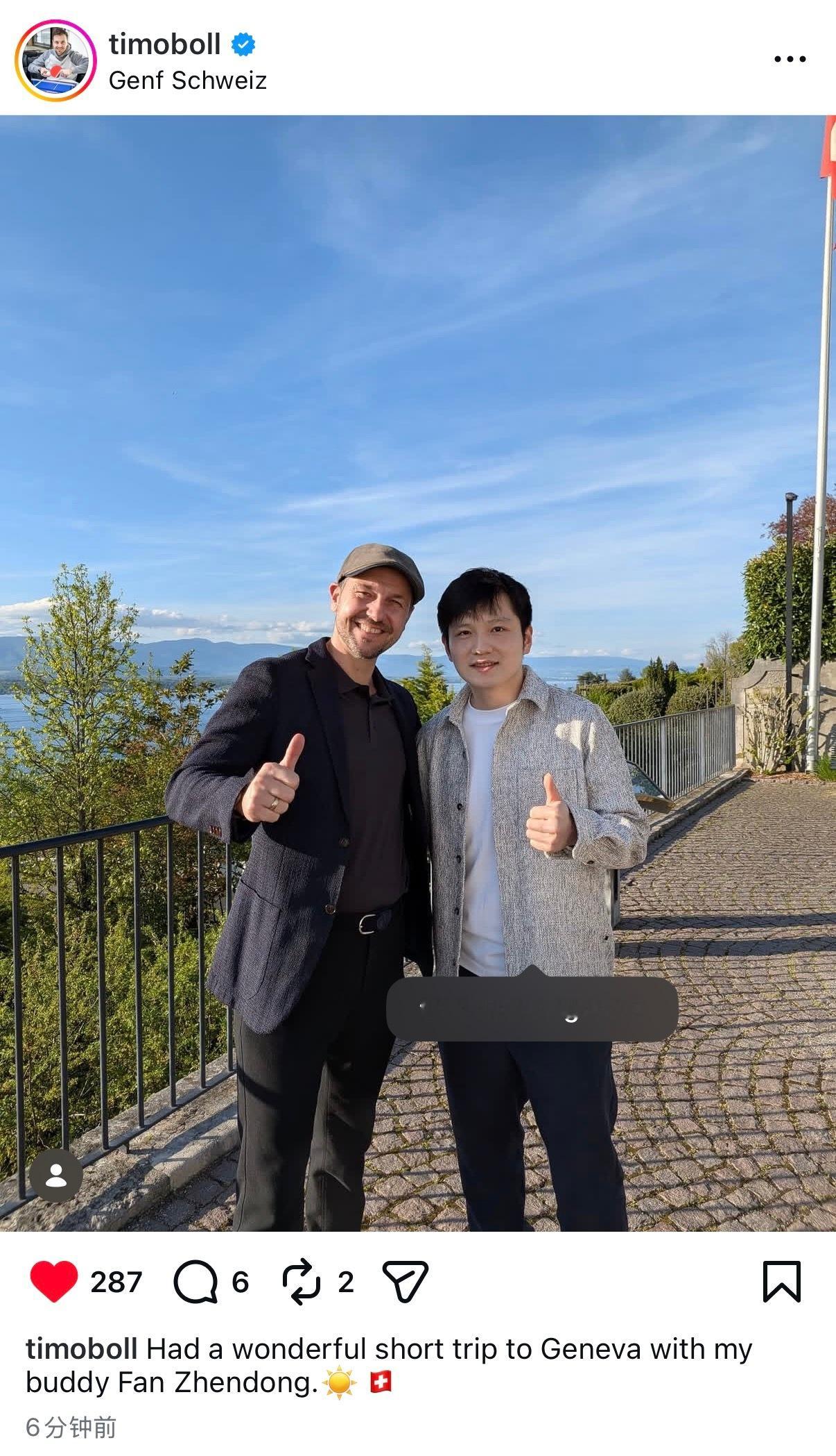 樊振东 🏓【20260418】【合影】Cr. Instagram @ timobollHad a wonderful short trip to Geneva with my buddy Fan Zhendong.☀️🇨🇭