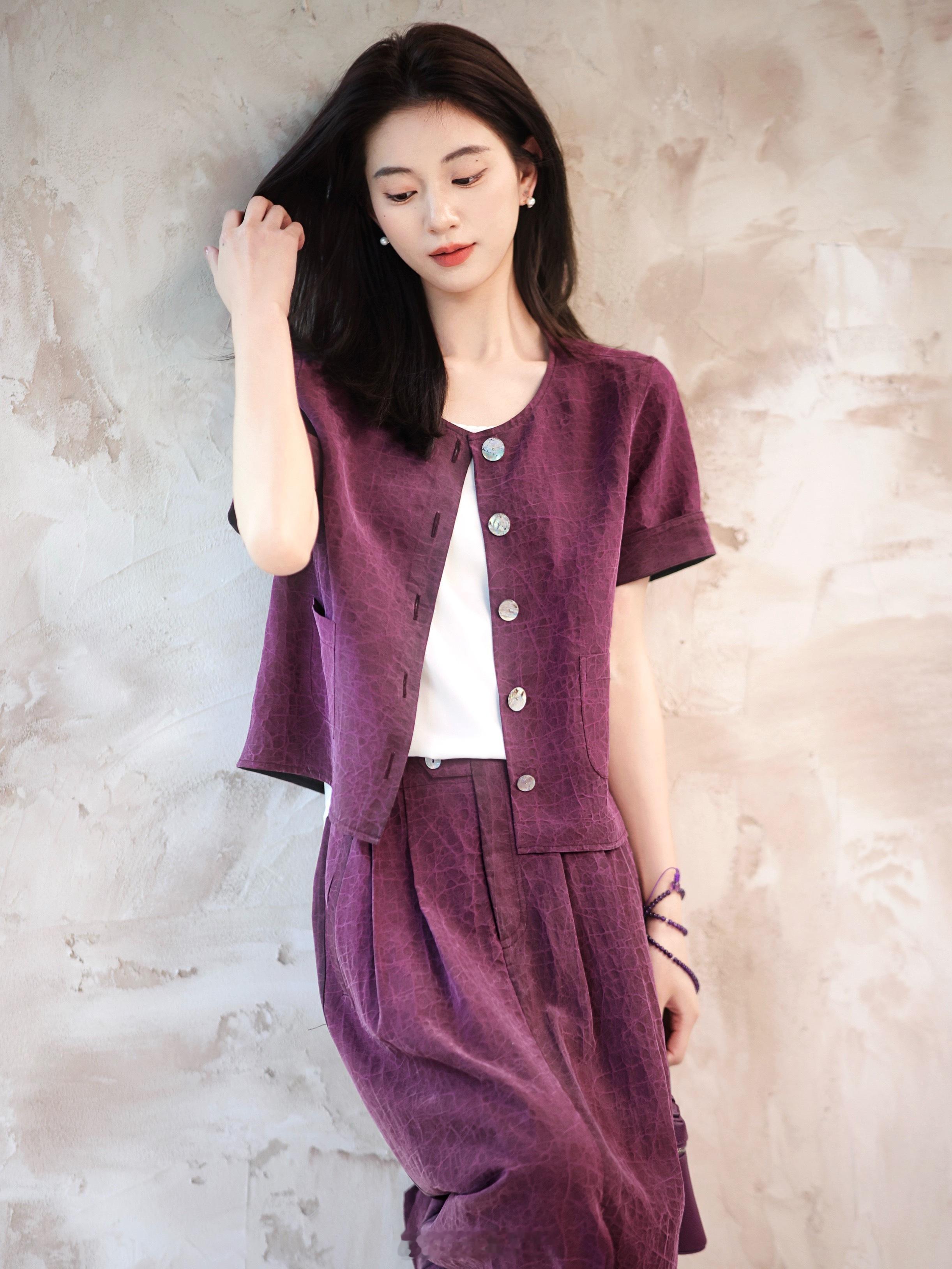 非遗香云纱!真的要给个夯!100真丝彩龟纹 贵气舒服 温润清凉短袖开衫+半裙 通