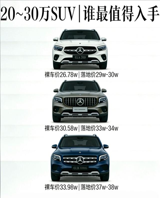 奔驰4S店销售干货来袭!20-30万预算想拿下三叉星徽SUV,纠结GLA 200、GLA 220、GLB 220这三台?不用慌,按需求选绝不踩坑👇