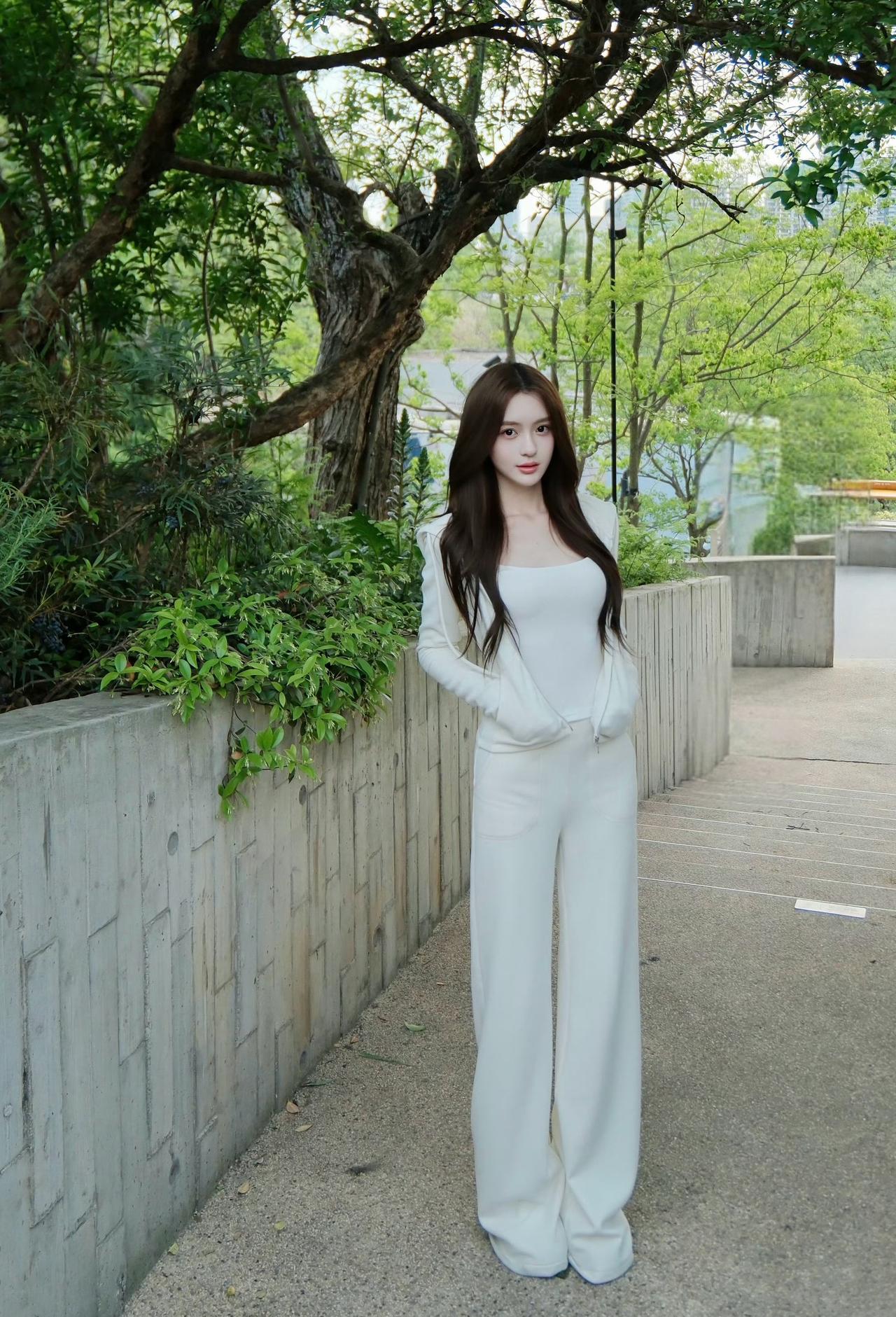 一身白色穿搭,清新自然,这一简单时尚搭配,展现出简约又优雅的气质。