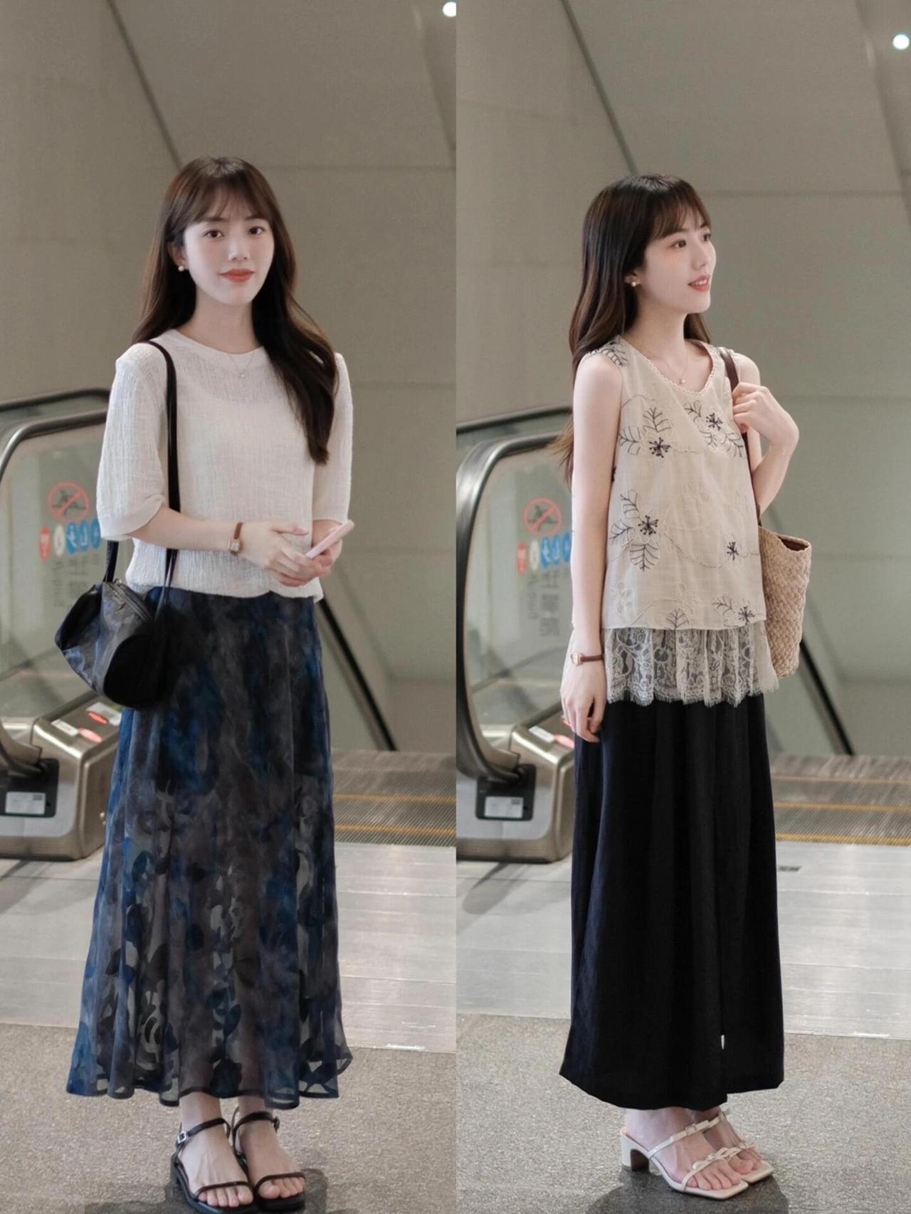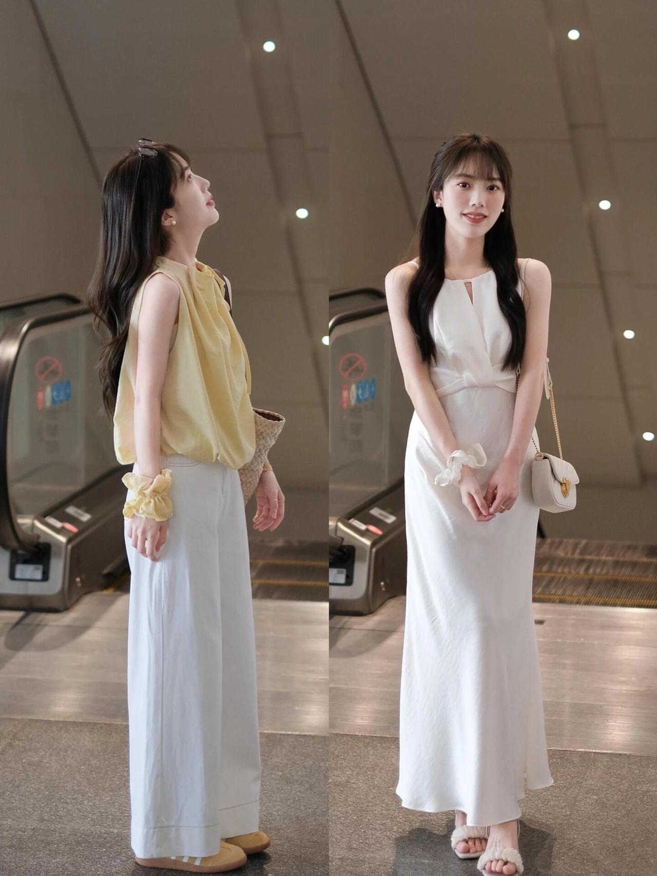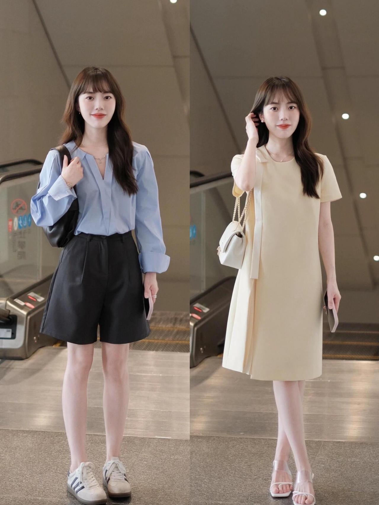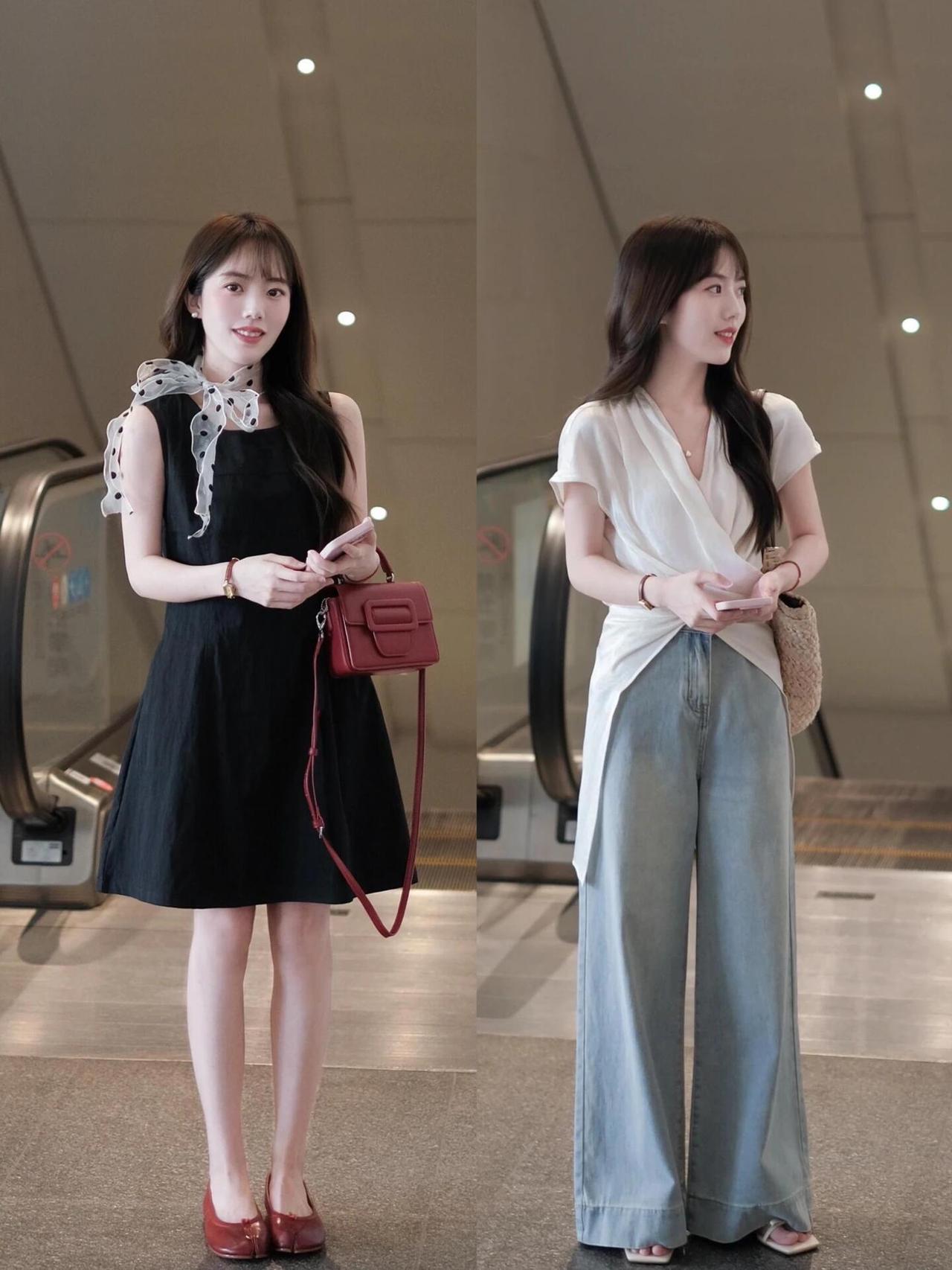 她用短款蕾丝衫+同色系半裙打造高腰线,白衬衫+高腰西装短裤利落又显腿长;或是用针织开衫+直筒牛仔裤、印花T恤+阔腿裤拉长比例,配色清新柔和,搭配浅口鞋和精致包包,整套look温柔又显气质,轻松穿出高挑轻盈感。