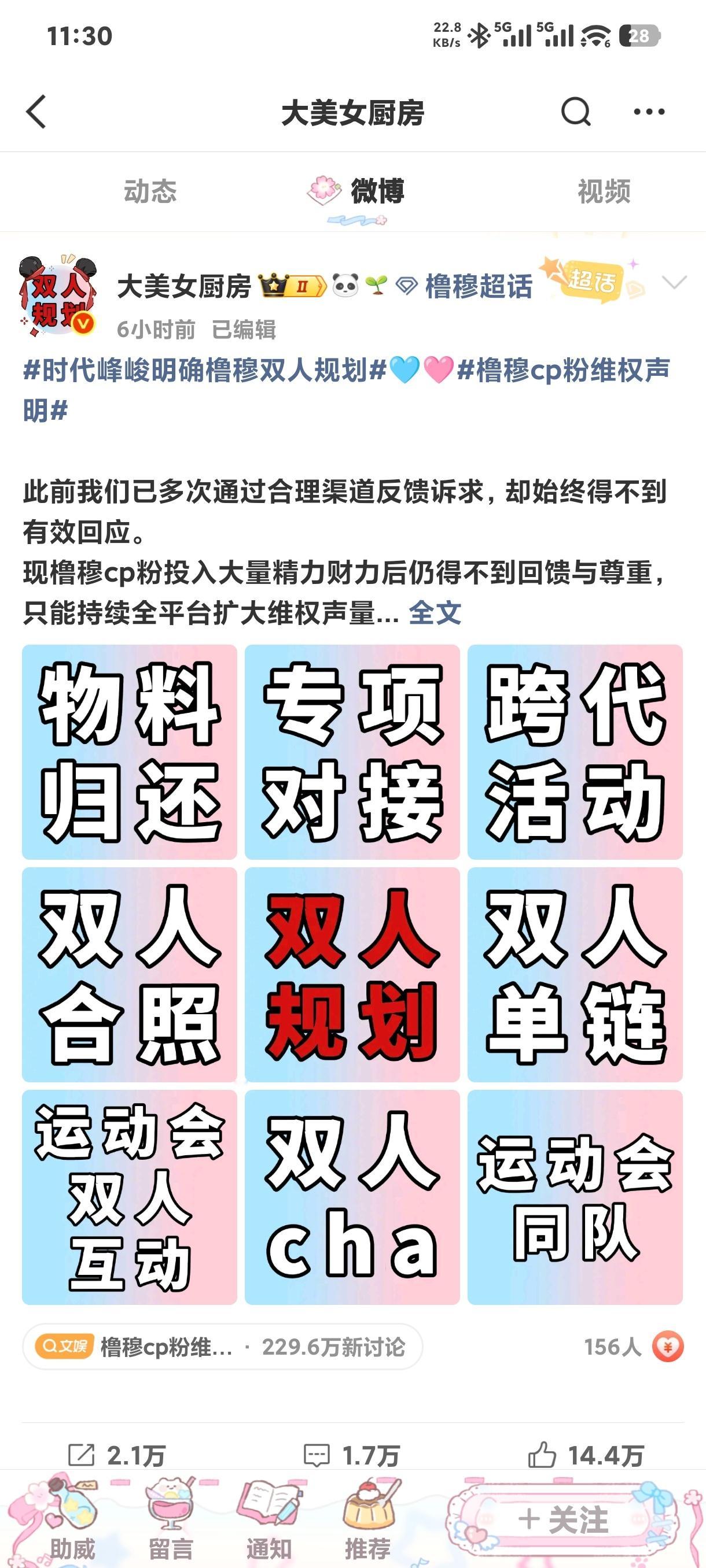 橹穆管理组要求橹穆双人长期规划、安排双人 cha 、设计并发布双人相关周边的单链,建立专项对接机制等1️⃣专项策划双人challenge;2️⃣完整保障跨代活动物料;3️⃣合理规划家族运动会双人互动;4️⃣发布双人周边单链!拒绝敷衍不作为。时代峰峻明确橹穆双人规划🩵🩷橹穆cp粉维权声明 橹穆